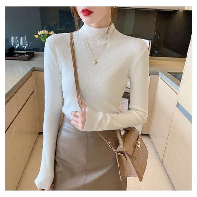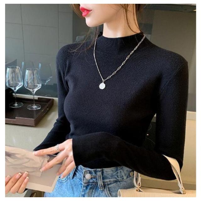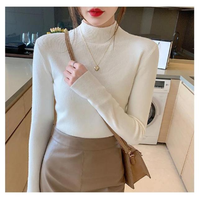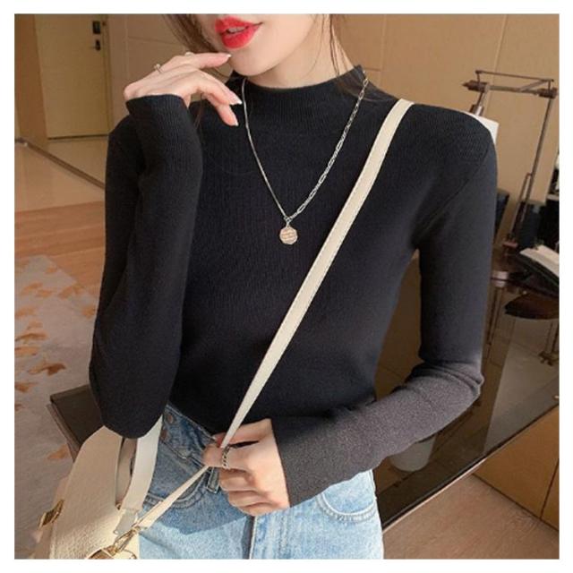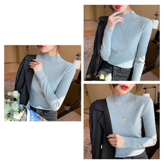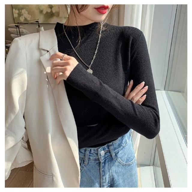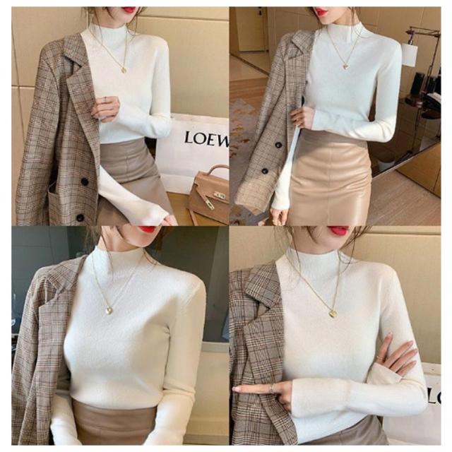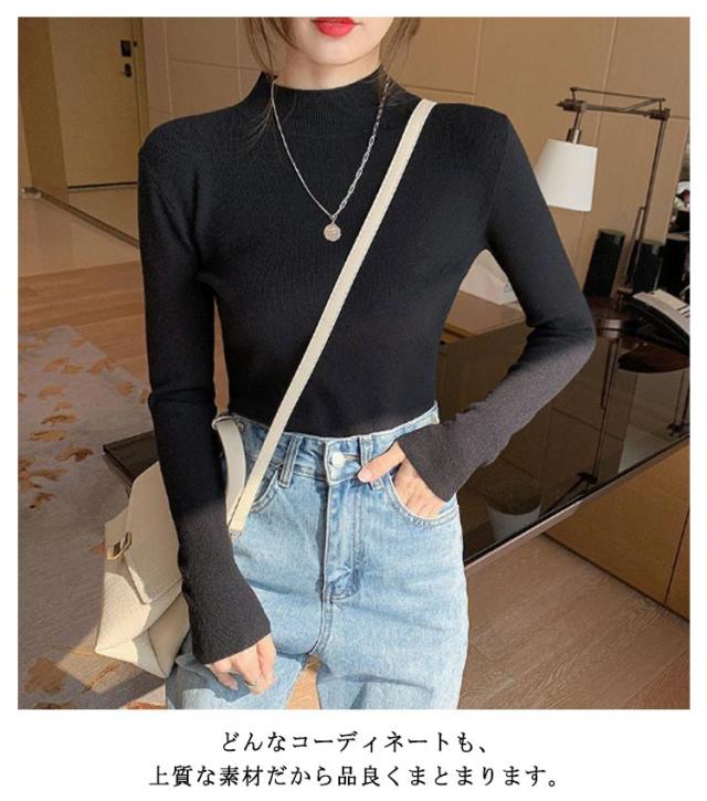 ウール混 ハイネック ニット トップス レディース インナー 重ね着 ニットセーター ストレッチ リブ レイヤード 柔らかい あったか 上質 軽い 薄手 無地 淡色 大人 カジュアル オフィス 大きいサイズ