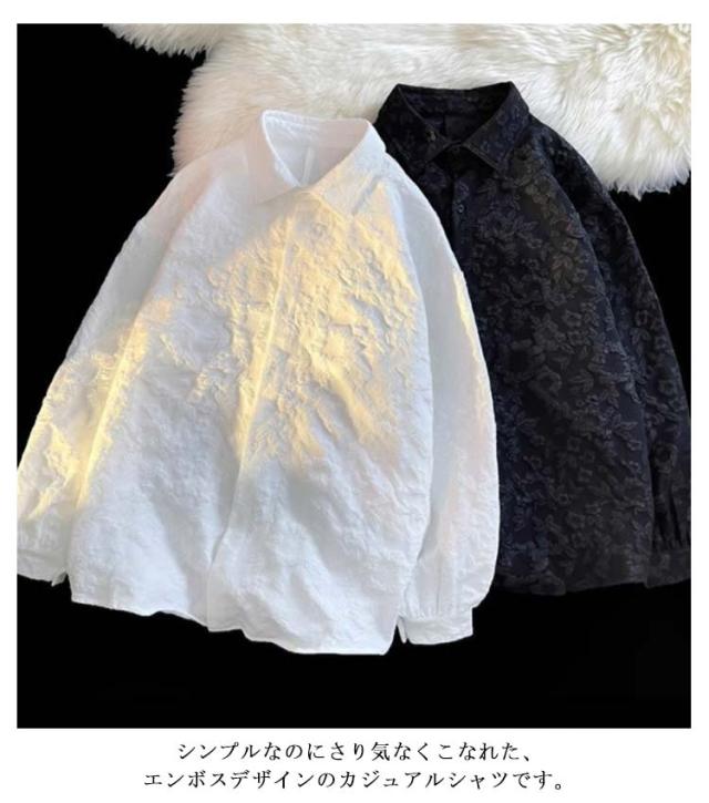 エンボス カジュアルシャツ メンズ 花柄シャツ 長袖シャツ 開襟シャツ 柄シャツ 大きいサイズ おしゃれ ビンテージ カジュアル 紳士服 トップス 韓国ファッション かっこいい M L XL 2XL