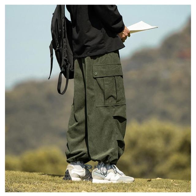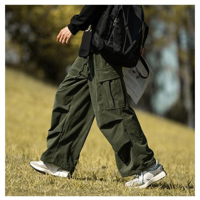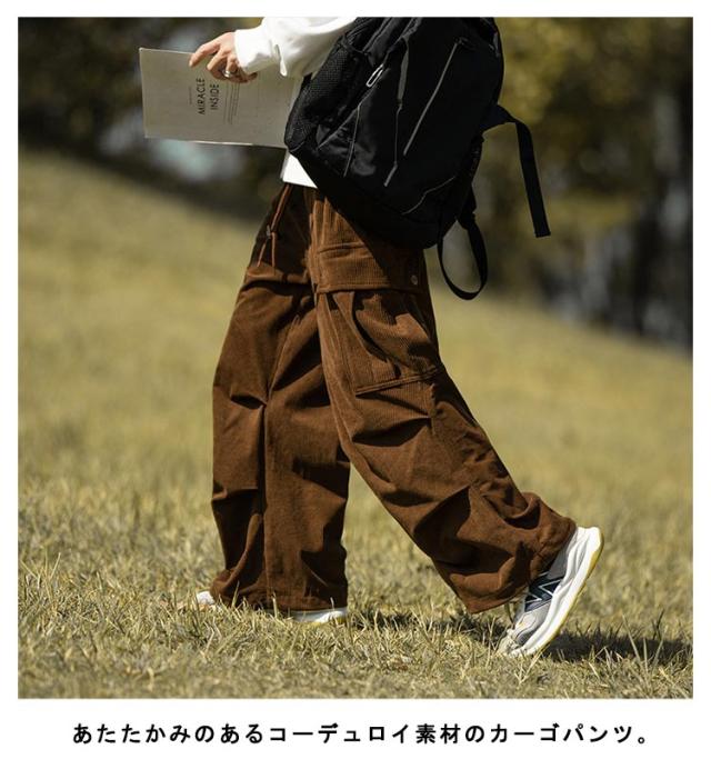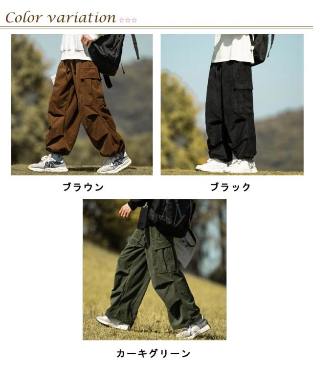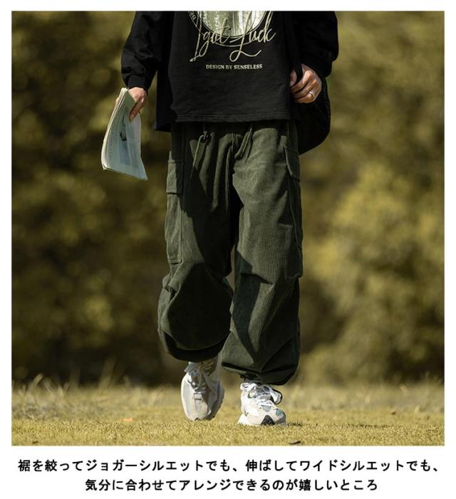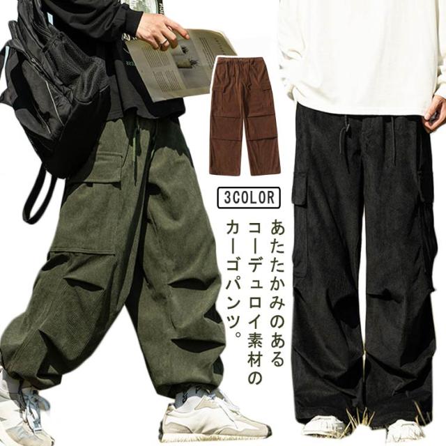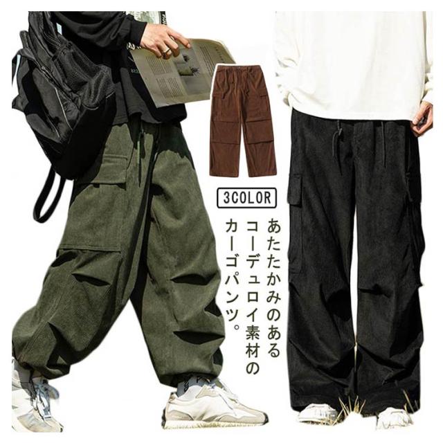 コーデュロイ カーゴパンツ メンズ ミリタリーパンツ 送料無料 韓国 ワイドパンツ ウエストゴム ワークパンツ コーデュロイパンツ イージーパンツ 大きめ 大きいサイズ カジュアルパンツ ストリート系 韓国 ファッション 秋服 秋 秋冬