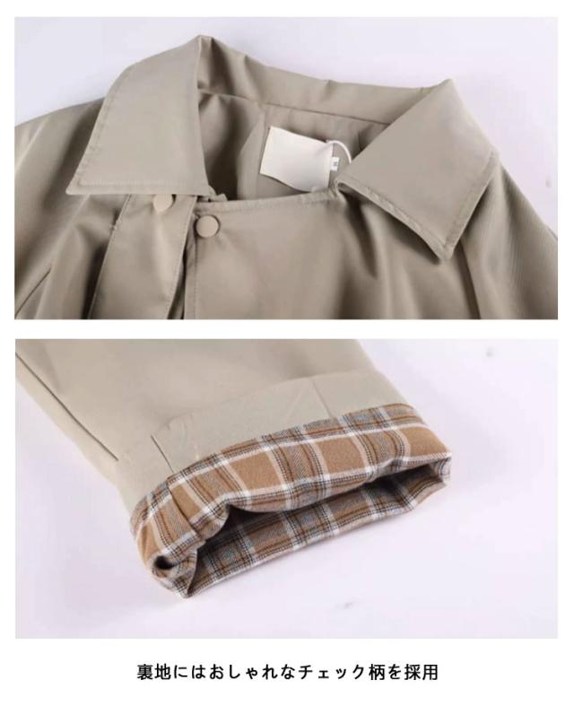 | シンプルなデザインのステンカラーコート シワになりにくく、微光沢感がプラスされた上品な印象に仕上げられ、きちんと感もあるのでどんな装いにも合わせやすいシルエットに仕上げています 裏地にはおしゃれなチェック柄を採用 | |