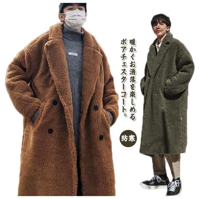 ボアコート ボアジャケット アウター チェスターコート メンズ ロングコート 裏ボア 暖ボア ロングカーディガン オーバーサイズ ゆったり ブルゾン 軽量 暖かい ドロップショルダー アウター もこもこ あったか 秋冬 冬服 防風 防寒 冬物 おしゃれ 送料無料