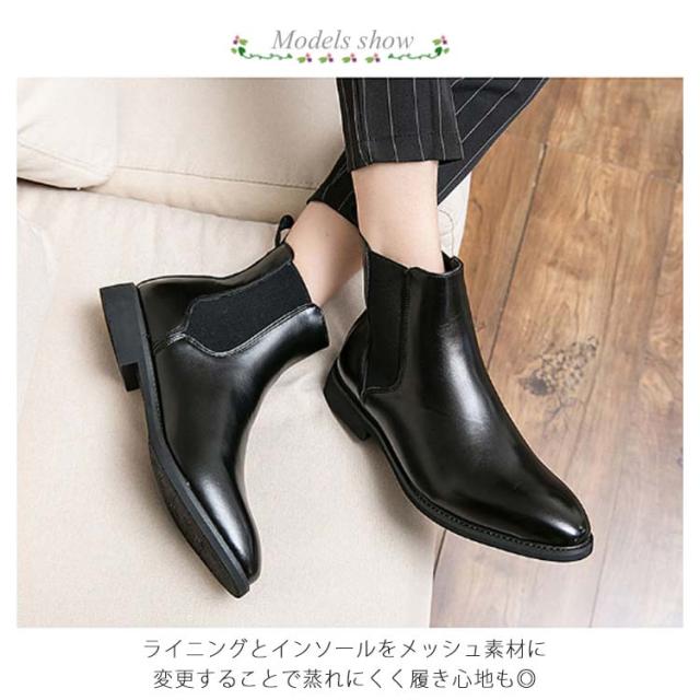 | きれいめシルエットのサイドゴアショートブーツ レザーを使用し、見た目も美しく、風合いも上質です履くほど足に馴染み、肌触りも気持ちいい 厚手のクッションが付いているので、長時間履いても疲れません。 人気のショート丈ブーツで季節やコーディネートを気にせず楽しめる一足に仕上がりました。 ライニングとインソールをメッシュ素材に変更することで蒸れにくく履き心地も◎ 通勤・通学や10代 20代 30代 40代 50代 と年代を問わず使える万能シューズです | |