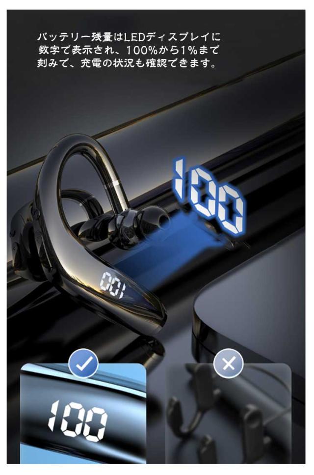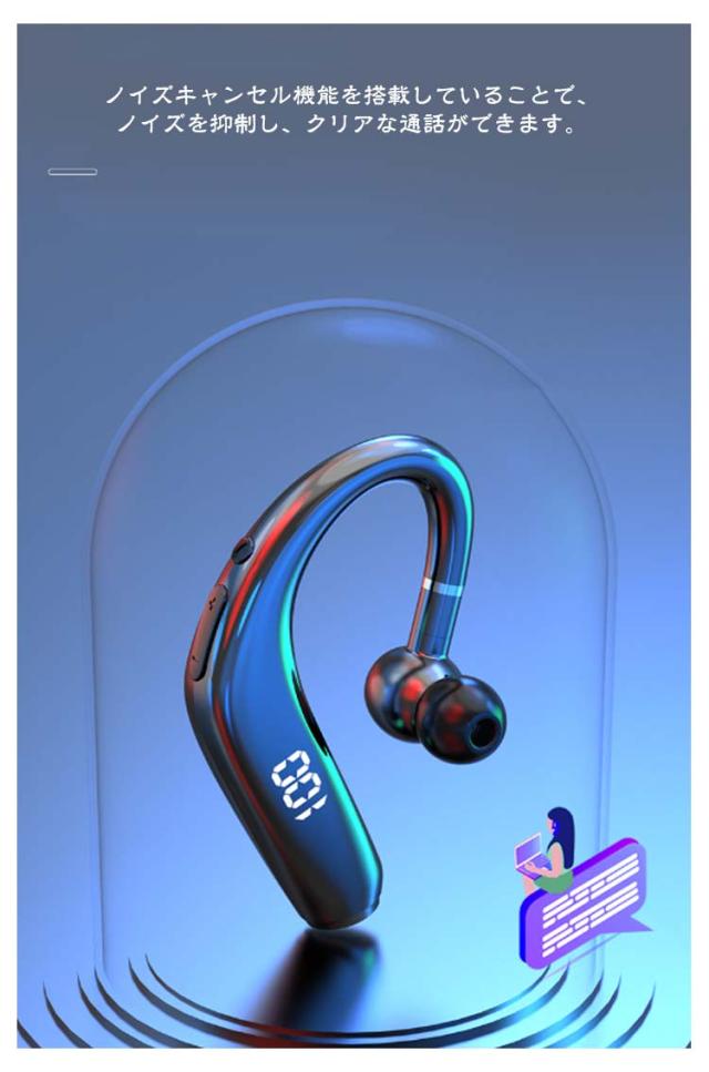 Bluetooth5.3 イヤホン ブルートゥースイヤホン IPX5 防水 残量表示 ワイヤレスイヤホン ヘッドセット 耳掛け型 片耳 高音質 マイク内蔵 超長待機 180°回転 左右耳兼用 iPhone/Android 在宅勤務用 通勤/通学 最新型 急速充電 ノイズキャンセリング