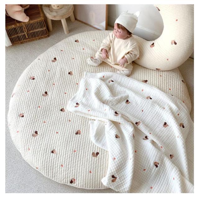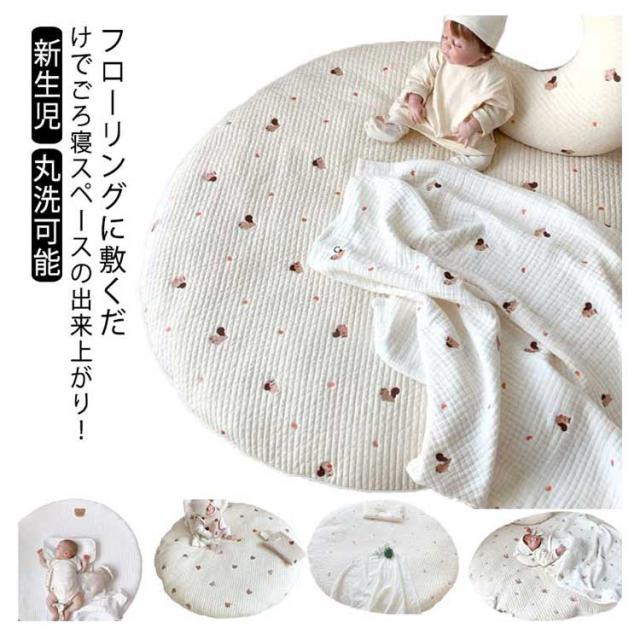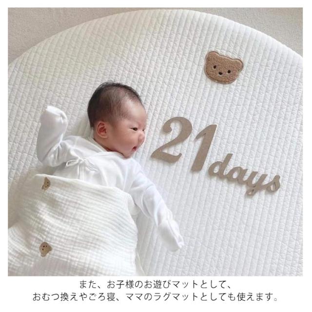 洗える サニーマット 円形 ベビー お昼寝マット プレイマット コットン ベビーマット 月齢フォト 月齢 フォト マット 赤ちゃん ごろ寝アート 寝相アート よちよちマット 刺繍 出産祝い プレゼント ギフト イブルマット 新生児 丸洗可能
