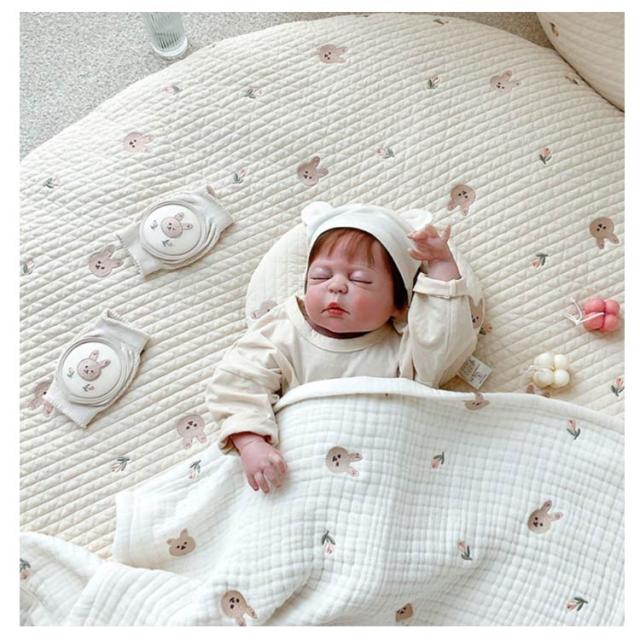 | フローリングに敷くだけでごろ寝スペースの出来上がり! 厚くて柔らかくて、赤ちゃんの夜寝用マットとしておすすめです。遊び用マレイマットにもできます。 また、お子様のお遊びマットとして、おむつ換えやごろ寝、ママのラグマットとしても使えます。 お子様の成長記録の記念撮影や話題の「寝相アート」の背景にもびったりのかわいいデザインのマットです。 | |