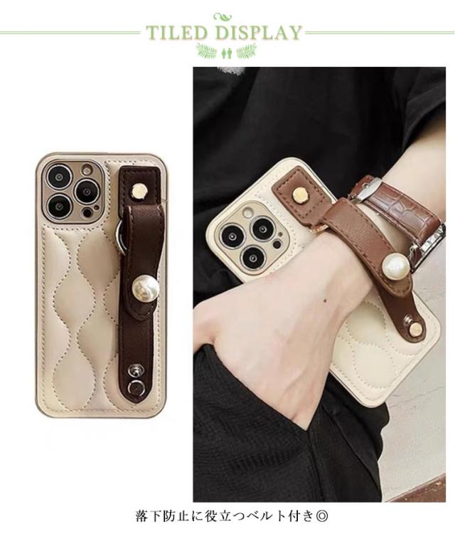 iPhone15 ケース 落下防止 ベルト付き キルティングケース 耐衝撃 キルティング スマホケース iPhoneケース キルティング ケース バンド付き 衝撃保護 スマホカバー iPhone15Pro iPhone15ProMax ケース