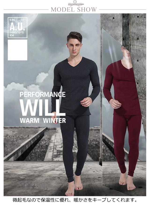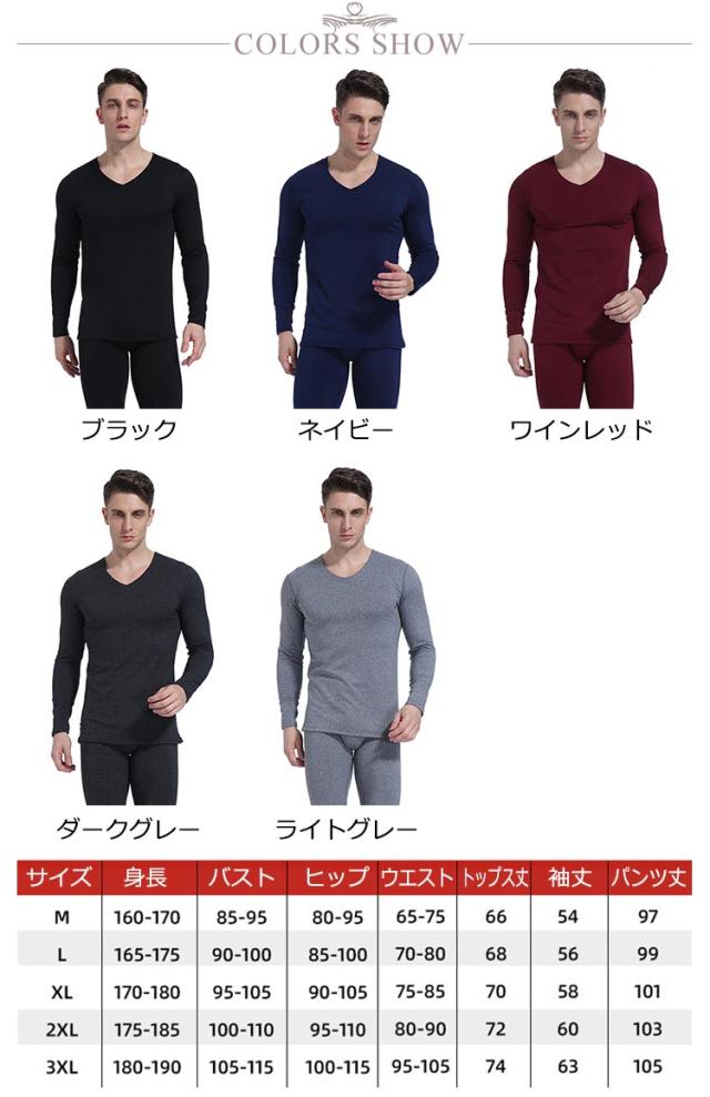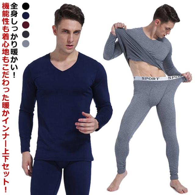 微起毛インナー メンズ インナーセット 発熱インナー 上下セット ヒートテック あったかインナー 裏起毛 インナー 無地 長袖 Vネック カットソー ロングパンツ 肌着 保温 暖かい 防寒 ストレッチ 柔らかい 肌に優しい 冬用 防寒着 大きいサイズ 送料無料