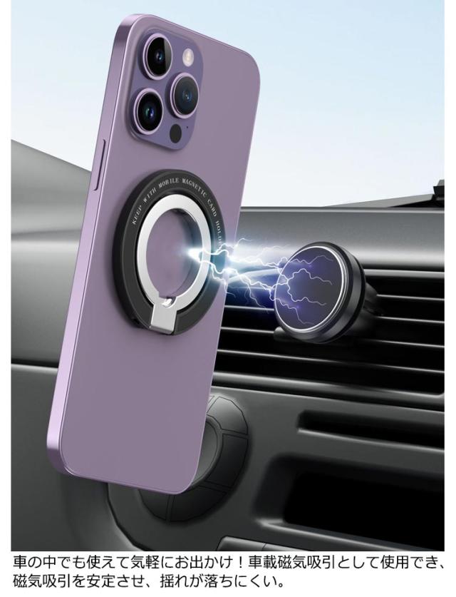 Magsafe対応 スマホリング マグネットリング シンプル マグネット 360度 180度 2段変形 MagSafe おしゃれ 薄型 かわいい ロゴ スマートフォン 簡単 着脱 吸着 貼り直し 車載 iPhone15 iPhone 14 13 Plus 携帯電話スタンド スマホスタンド 送料無料