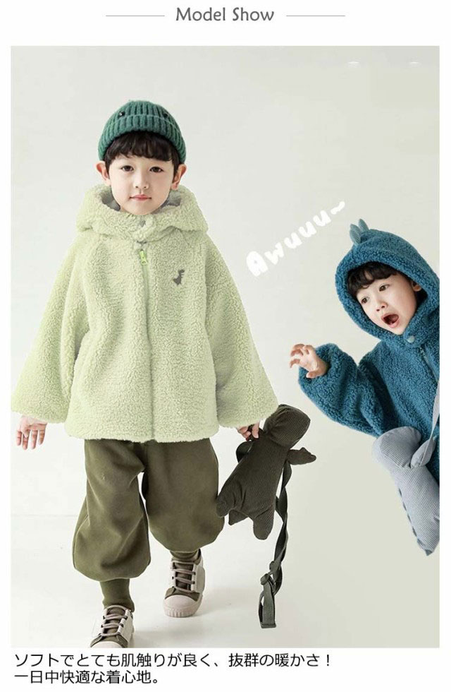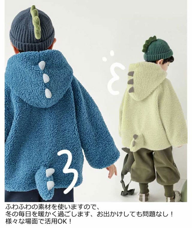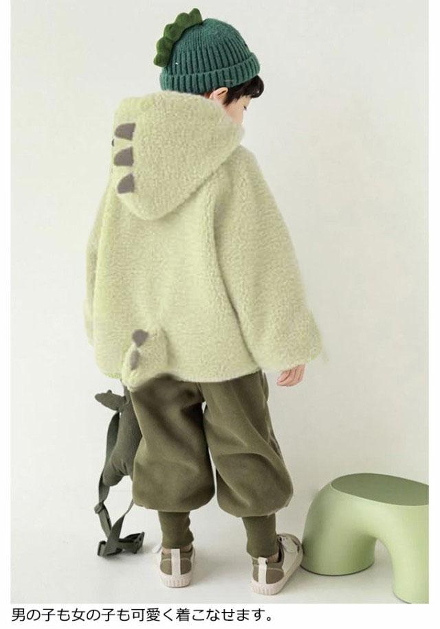 キッズ フリース ジャケット 男の子 女の子 冬物 秋冬 両面暖かい ボアジャケット フリース フード付きパーカー 前開き ジップアップ 恐竜ジャケット 可愛い