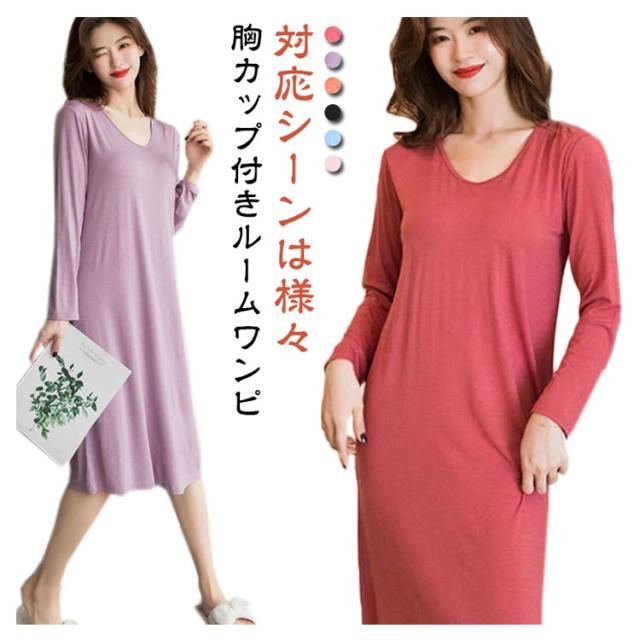 | 【胸カップ付きルームワンピ】パッドが取り外す不可のナイトブラとパジャマワンピースが一緒になったデザイン。おうちでも可愛く過ごせるっすり快眠できるルームウェア。家でも外出先でも着られます。家ではリラックス、外でご近所さんにあっても恥ずかしくない外出着兼部屋着です。 【対応シーンは様々】お部屋でのリラックスタイムや、就寝時のパジャマ、ルームウェア、ナイトウェア、パジャマ、寝間着、便利服、旅行、部屋着等ご使用いただけます。20代/30代/40代/50代まで年齢問わず着れます。ふんわりソフトな肌触りと軽い着心地はお風呂上がりにも気持ちがいいです。 さらりとした着心地で優しい肌触り。 | |