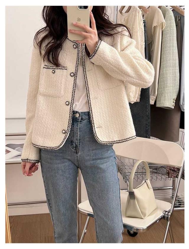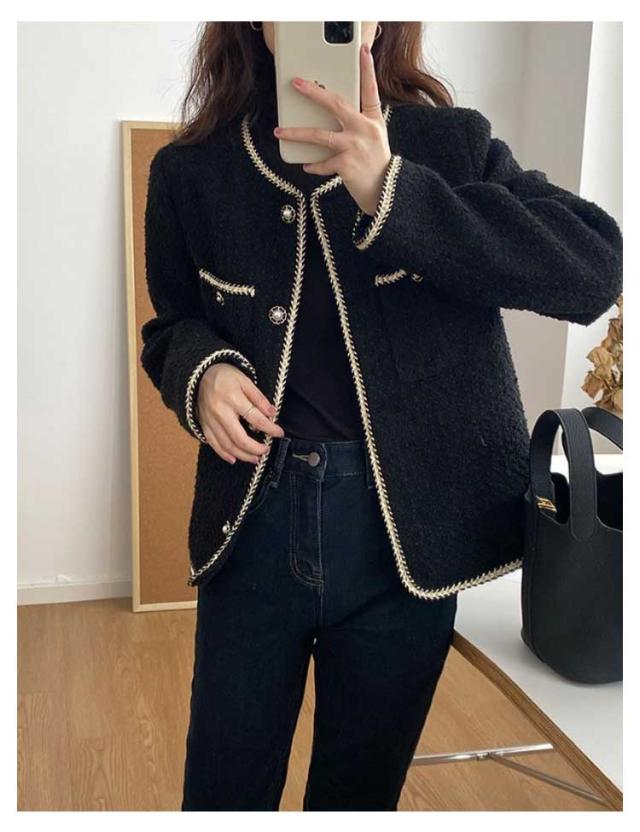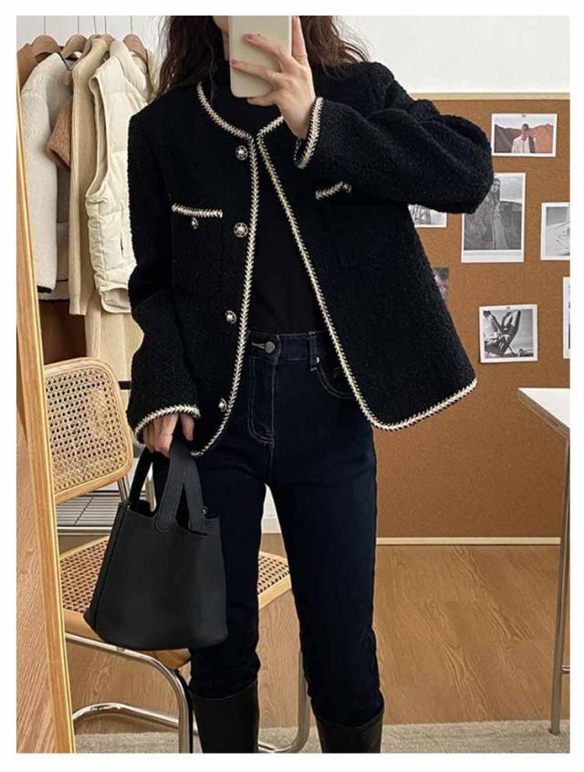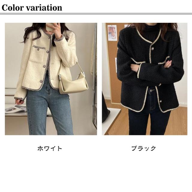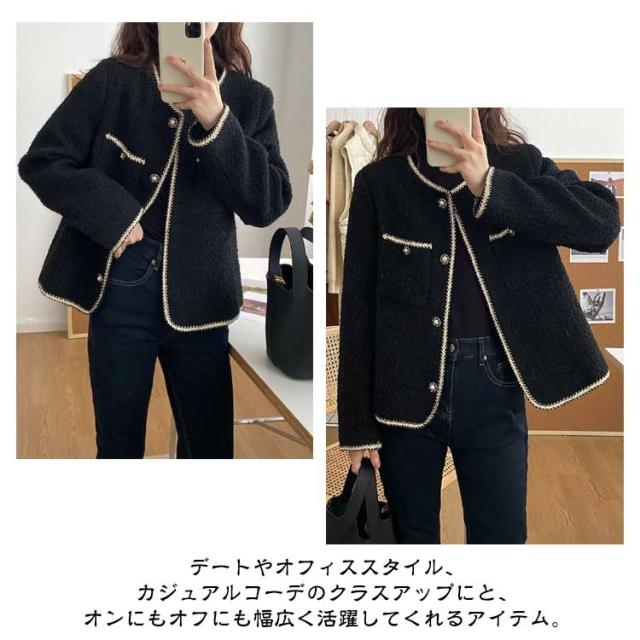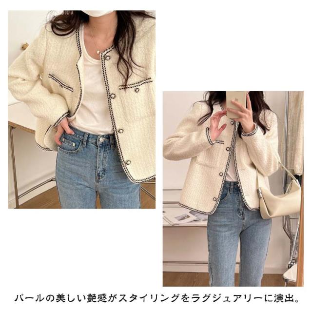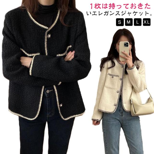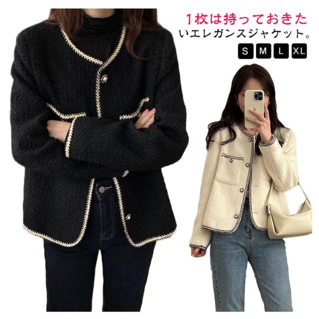 ツィードジャケット レディース ノーカラージャケット 春秋 ジャケット スーツジャケット 薄手 裏地付き トップス パール アウター セレモニー カジュアル 卒業式 入学式 お呼ばれ 普段使い 通勤 ノーカラー 韓国 送料無料