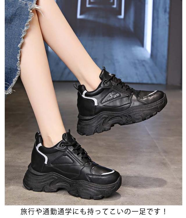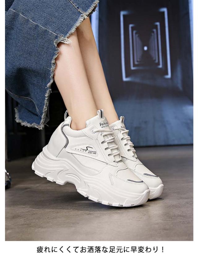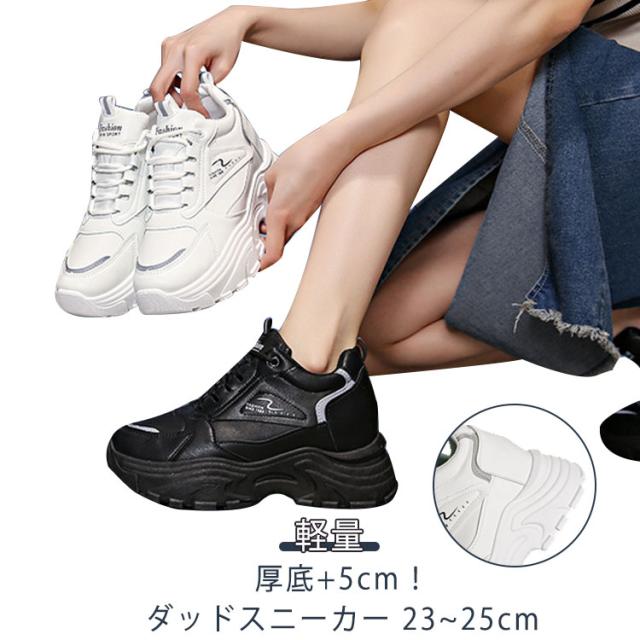 ダッドスニーカー レディース 韓国 ダッドシューズ 厚底 軽量 インヒール オールシーズン 5センチヒール レースアップ ローカット 背が高くなる 靴 身長アップ 歩きやすい 疲れにくい 学生 通学 通勤 仕事 学生靴 イベント 22.5cm〜25.0cm スニーカー 春夏秋冬