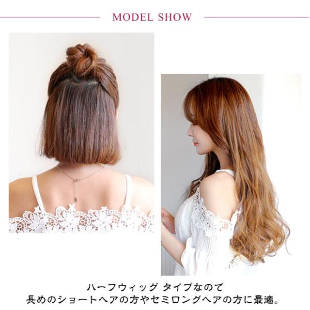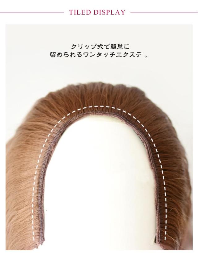 | 可愛いワンタッチエクステ? クリップ式で簡単に留められるワンタッチエクステ 。 ハーフウィッグ タイプなので長めのショートヘアの方やセミロングヘアの方に最適。 耐熱ファイバーなのでコテ・アイロン・ドライヤー180℃まで使用OK。 ウィッグの湿度を適度に持たせるためには、スプレーを利用することをオススメします。 | |