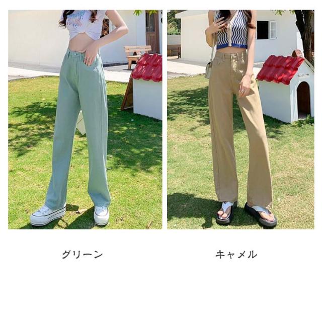 ワイドパンツ レディース デニムパンツ ハイウエスト ボトムス 韓国ファッション ワイド ジーンズ おしゃれ 春 夏 秋 冬 ズボン パンツ ロング 大きいサイズ ブラック 黒 ピンク デニム ストレート 美脚 コーデ 着痩せ ブルー