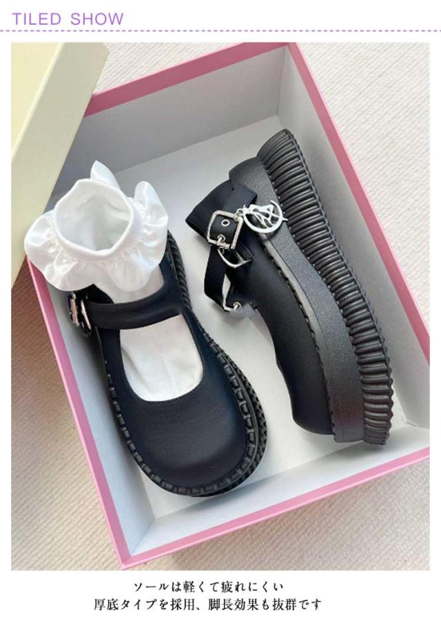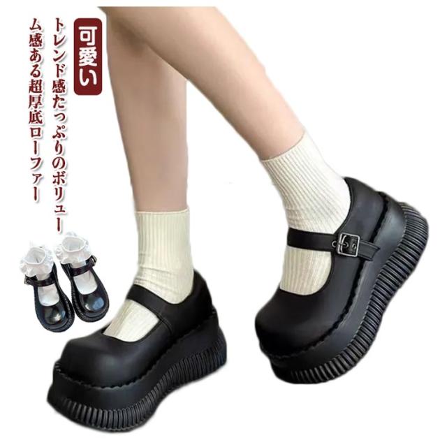 超厚底 6cmヒール 厚底シューズ ローファー 厚底 レディース ストラップ パンプス ストラップパンプス ストラップシューズ 通学 高校生 女子高生 可愛い 学生靴 通勤 通学 ゴスロリ 制服 ロリータ コスプレ メイド ブラック きれいめ フォーマル