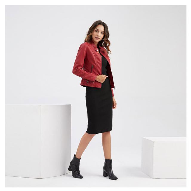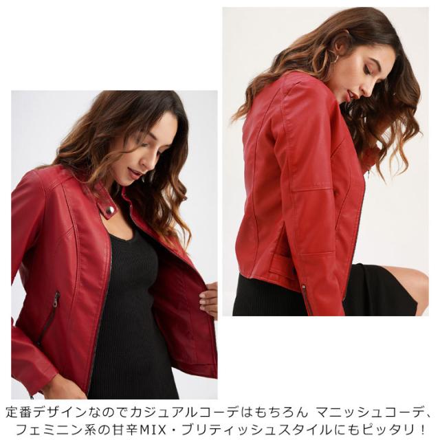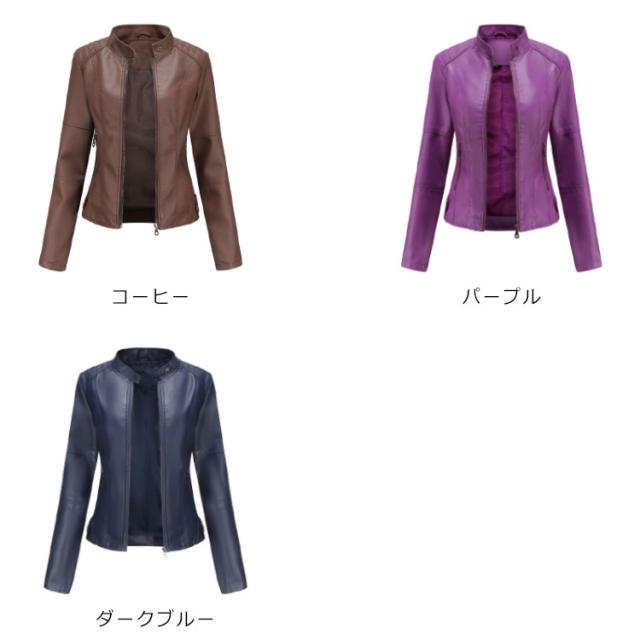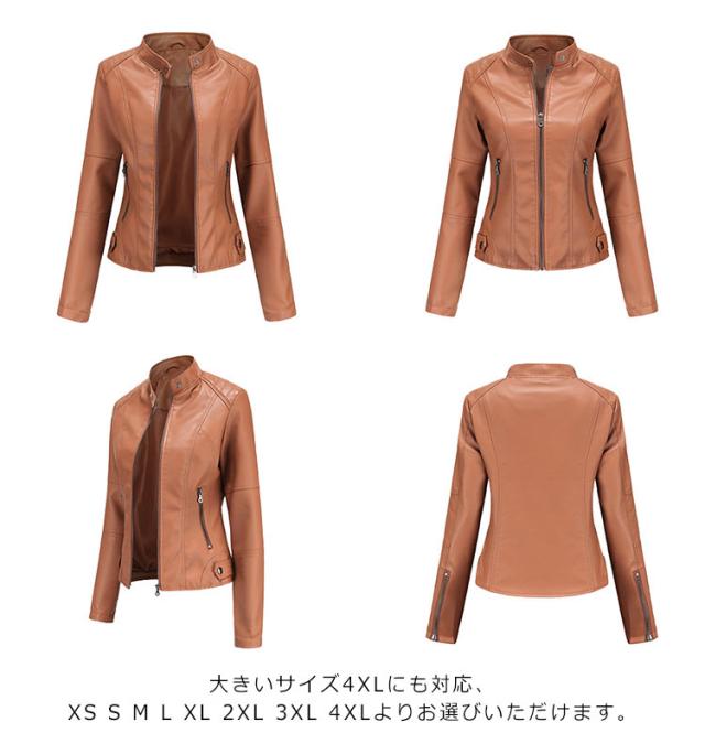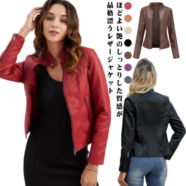 ライダースジャケット フェイクレザー レディース レザージャケット 立ち襟 スタンドカラー 秋冬 カッコイイ PU スリム 着?せ ショート丈 美脚 ジャケット ブルゾン 春 秋 冬 おしゃれ 大きいサイズ 大人 女性 プレゼント ギフト 送料無料 合皮 無地 シンプル