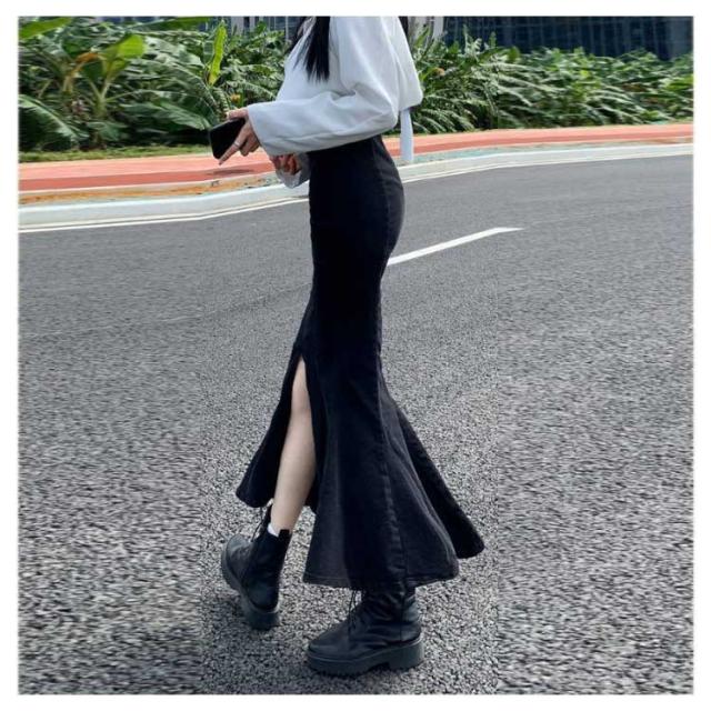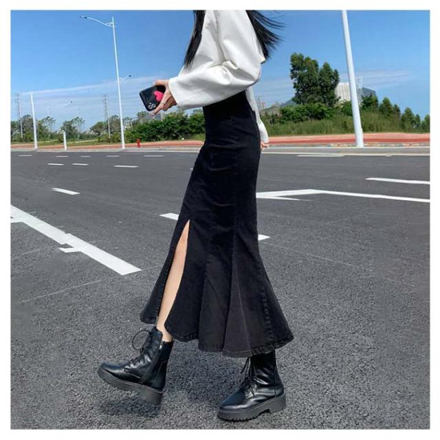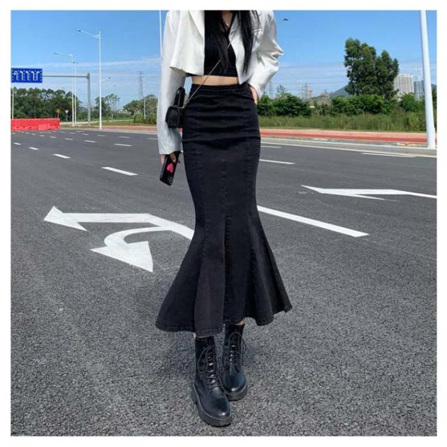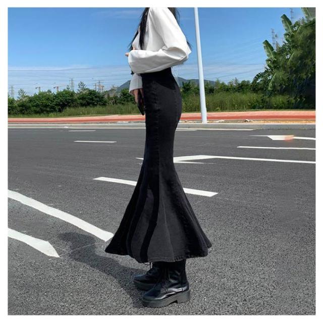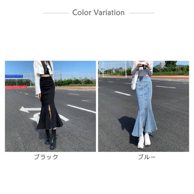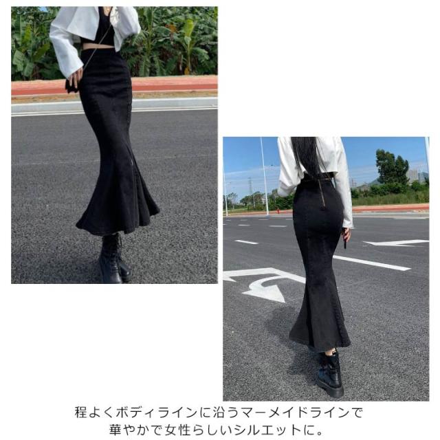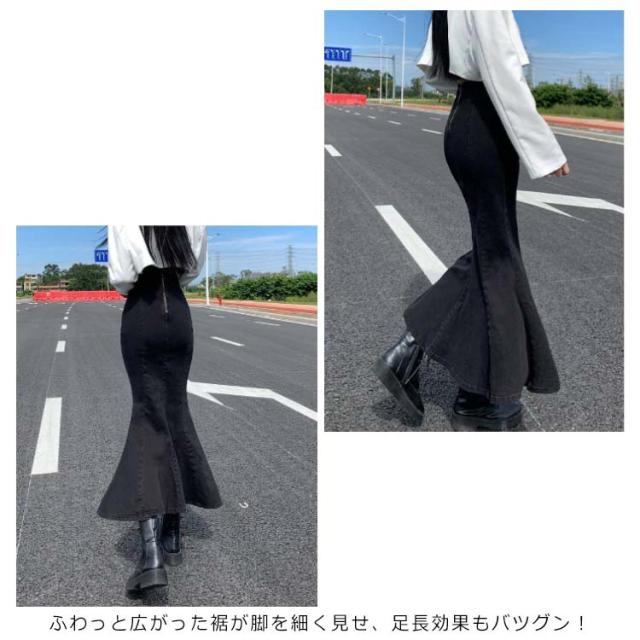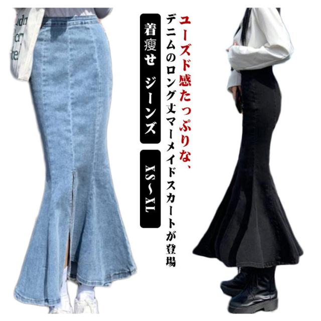 マーメイド スカート デニム 大きいサイズ ロングスカート タイトスカート フレアスカート フリル ロング おしゃれ かわいい レディース ボトムス 着?せ ジーンズ きれい マーメイドライン ハイウエスト ストレッチ 美脚 大人 女性 ギフト 送料無料