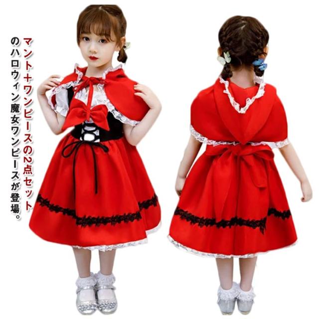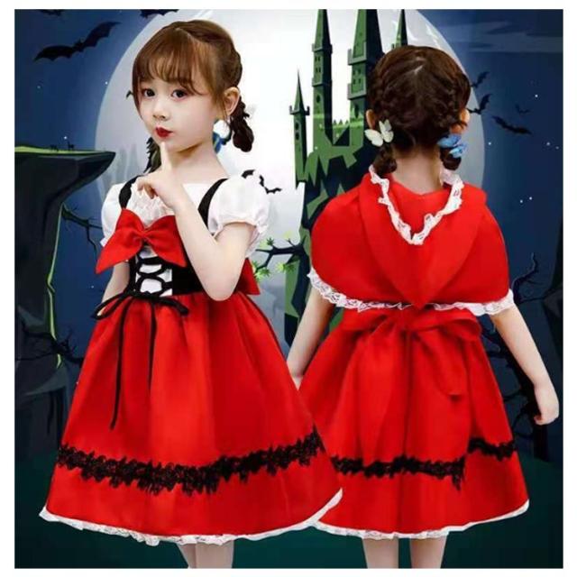 ハロウィン 衣装 子供 女の子 赤 ドレス ワンピース ケープ 子供服 コスプレ キッズ 仮装 コスチューム 魔女 メイドさん 童話 発表会 幼稚園 ハロウィン 仮装