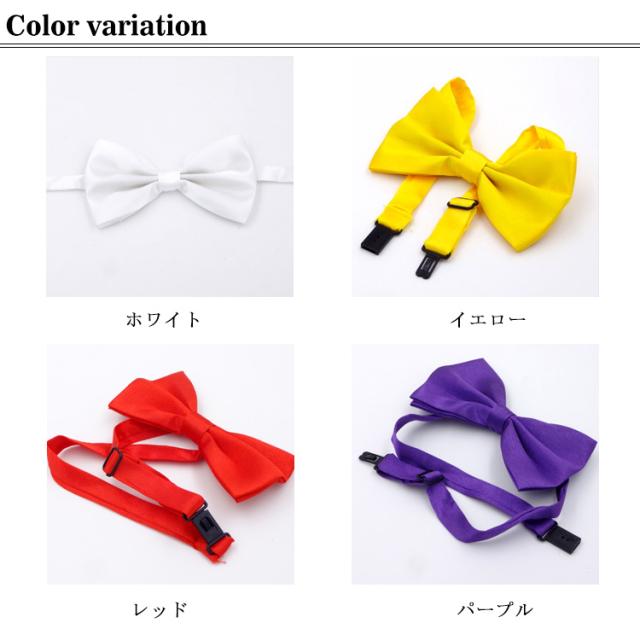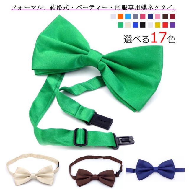 | フォーマル、結婚式・パーティー・制服専用蝶ネクタイ。 全17色!豊富なカラーバリエーション。 パ一ティやフォ一マルな場面では上品なモノト一ン。制服としてならお店のイメ一ジカラ一に合わせて。またイベントなどで使用するなら目立つお色味を。シ一ンに合わせてお楽しみください。 サイズ調整用のアジャスターが付いているのでお好みの長さに調節できます | |