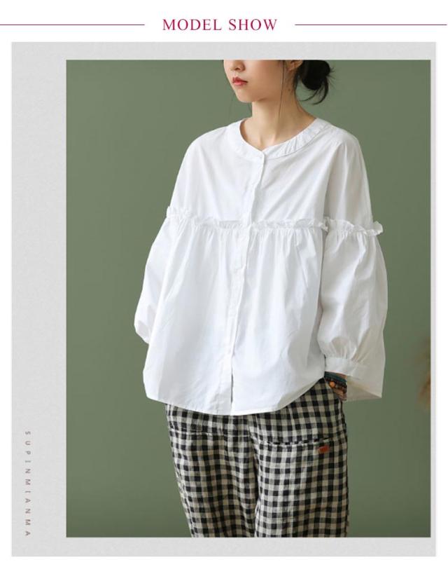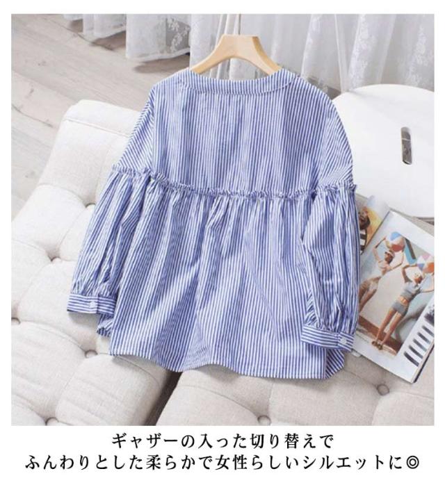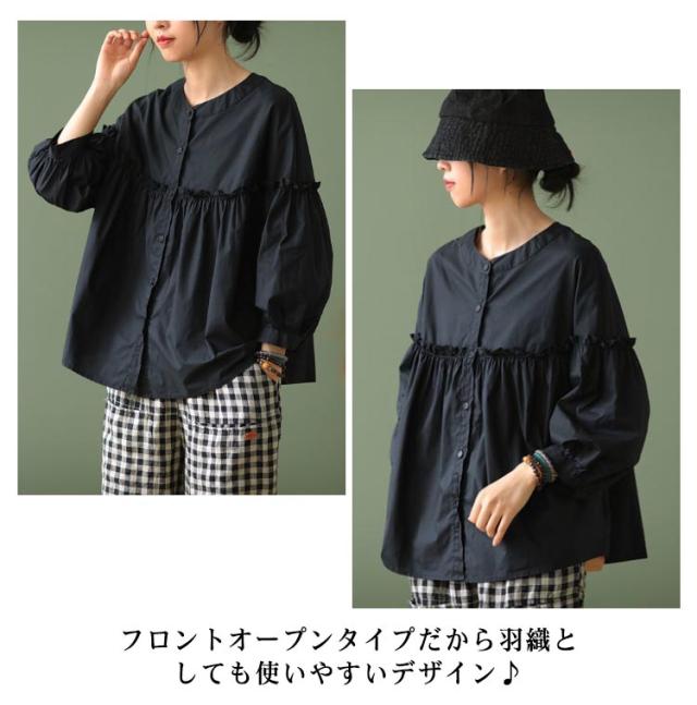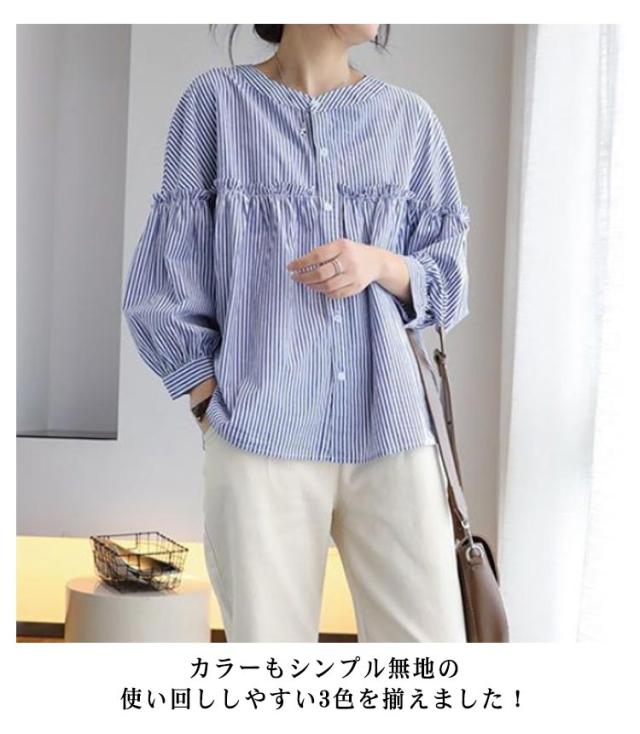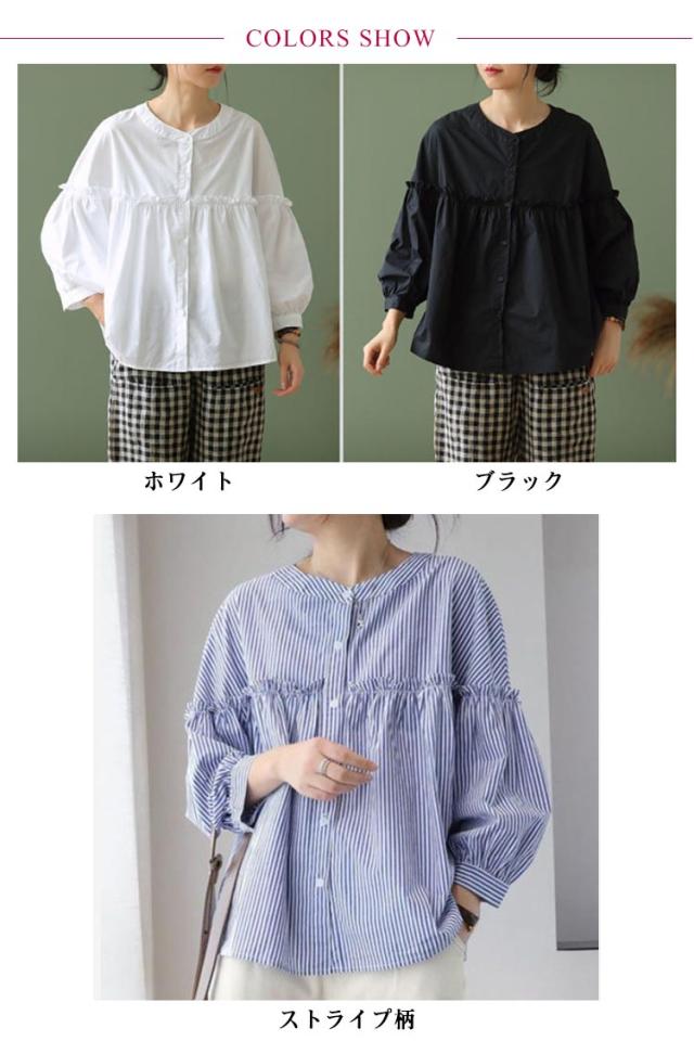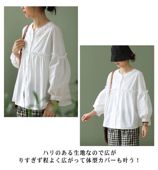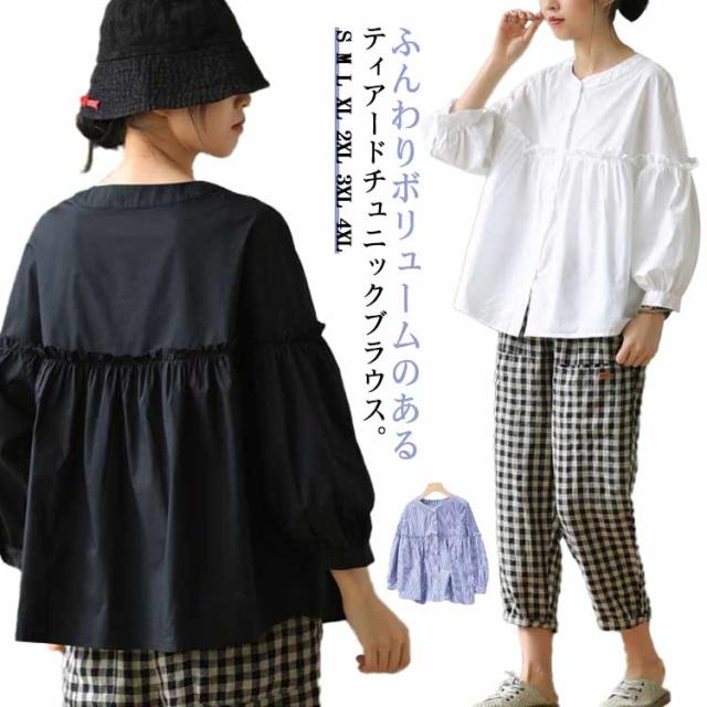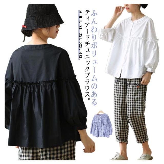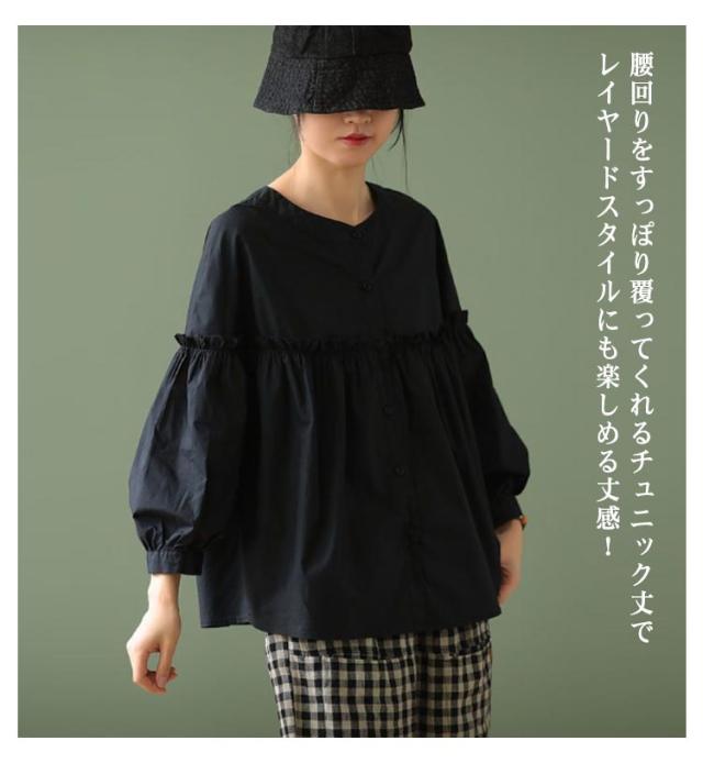 シャツチュニック レディース ブラウス 長袖 無地 フリル チュニック シャツブラウス タックシャツ 体型カバー お洒落 カジュアル風 フリル 羽織り 可愛い フォーマル 送料無料 大きいサイズ パフスリーブ 韓国