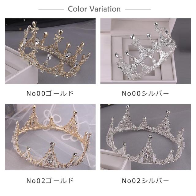 | クラシカルで愛らしいクラウン ドレスや会場、年齢を選ばず使え王道ティアラ。 上質なラインストーンを使用し、とってもキラキラと輝く仕上がりとなります。 どなたにでも似合いそうなデザインで、上品なヘアアレンジに小顔見せ効果! 花嫁様の可愛らしさを増します。 花嫁様の女性らしい気品をアップしてくれます。透明感をもっと引立ててくれますよ!☆ クラシカルなサテンやレースのドレスから、インポートドレスまで幅広くマッチします。 挙式や披露宴はもちろん、二次会や前撮りなど、どのシーンでもお召しいただけます。 お色はシルバーとゴールド、ブラックからお選びいただけます。 | |
