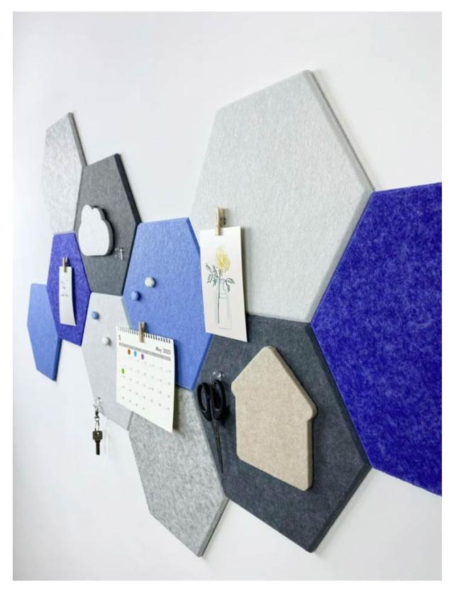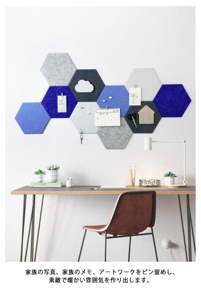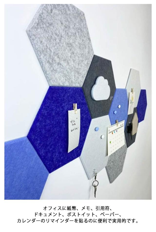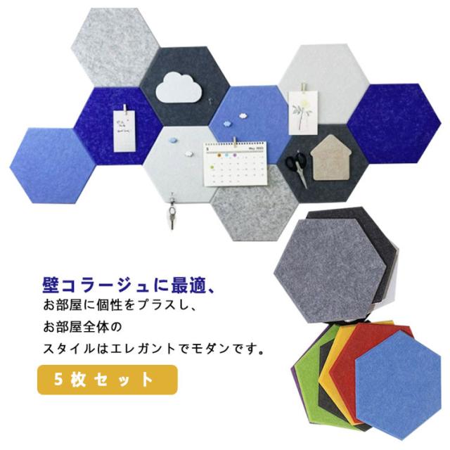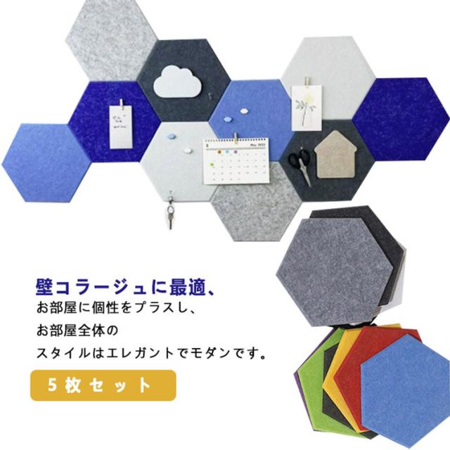 5枚セット フェルトボード パッド ディスプレイボード メモ 写真ボード 掲示板 カラフル 壁の装飾 オフィス 室内装飾 壁紙 シール 六角フェルトボードタイル スタンダード 壁面装飾 DIY 簡単 壁に貼る 防音材 騒音 対策 フェルト 防音パネル