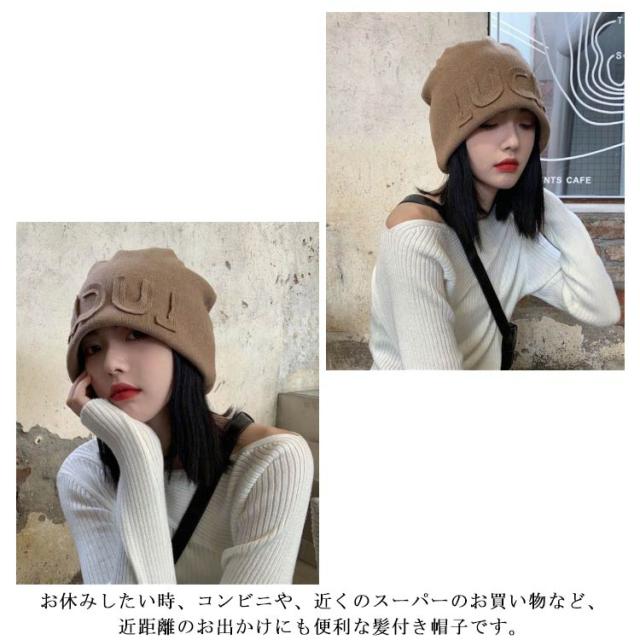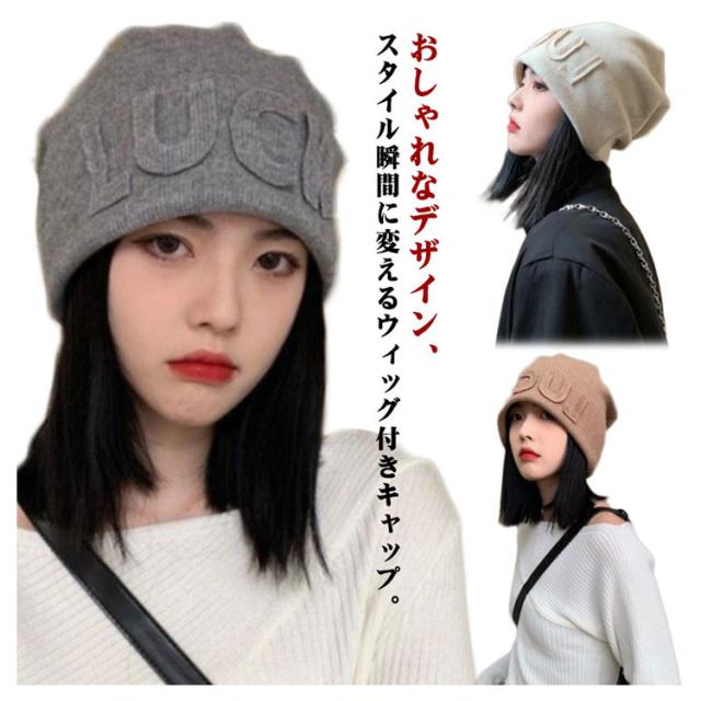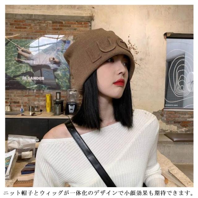 ニット帽 レディース 髪付き帽子 ウィッグ付き帽子 毛付き帽子 かつら付き セミショート ヘア ストレート ウィッグ一体型 帽子 ニット帽 ニットキャップ 医療用 小顔効果 帽子ウィッグ ブラウン ブラック