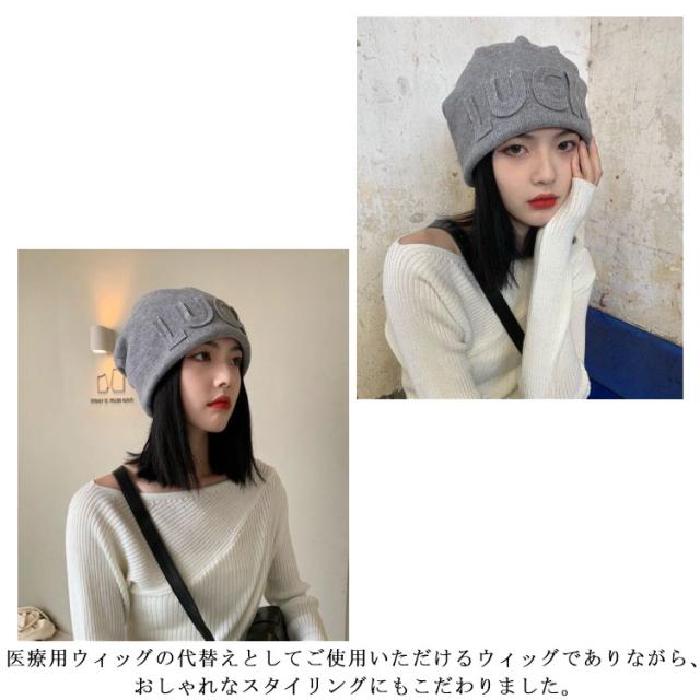 | おしゃれなデザイン、スタイル瞬間に変えるウィッグ付きキャップ。 ニット帽子とウィッグが一体化のデザインで小顔効果も期待できます。 帽子と合わせてご使用いただくため、つむじや分け目などのトップのスタイリングを気にせず、ご使用いただけます。 お休みしたい時、コンビニや、近くのスーパーのお買い物など、近距離のお出かけにも便利な髪付き帽子です。 医療用ウィッグの代替えとしてご使用いただけるウィッグでありながら、おしゃれなスタイリングにもこだわりました。 自分用としても、またプレゼントとしても喜ばれるアイテムです。 | |