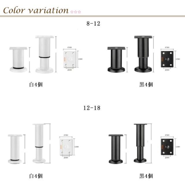 高さ調整 継ぎ脚 8-12cm 12-18cm 18-30cm 24-52cm こたつ用継脚 ソファー ベッド 机 継足 テーブル テーブル脚台 高さアップ 棚 高さ調整脚 継足し 脚高 冷蔵庫 家具 高さをあげる 静音 滑り止め 掃除便利 4個セット 耐荷重量300kg 防水 錆びにくい