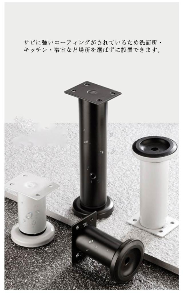 | 耐荷重量300kg!高さ調節機能付き、ソファーやベッド、テーブル、棚などの家具の高さを簡単に調節できる継ぎ脚。 粘着タイプ&ネジ止めタイプの取り付け方から選べます。 高さ調節機能付きなので、家具に合わせていつでも簡単に高さ変更ができます。 底面が滑り止めゴム素材でズレにくく、床への傷付きも防止できます。 サビに強いコーティングがされているため洗面所・キッチン・浴室など場所を選ばずに設置できます。 | |