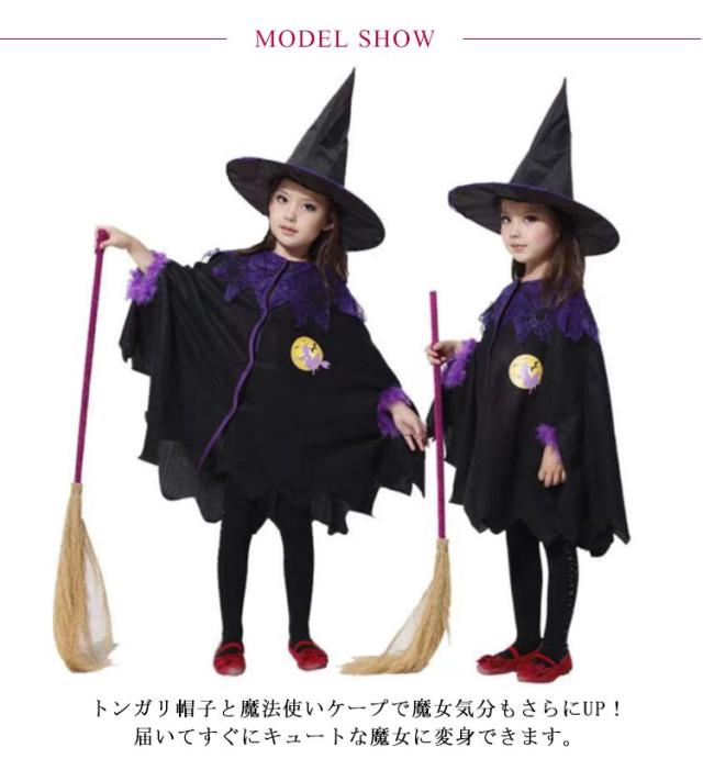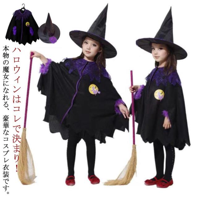 ハロウィン 衣装 子供 女の子 コスプレ衣装 魔女 魔法使い ハロウィン コスプレ 子供 仮装 女の子 帽子 ケープ 2点セット 小悪魔 コスプレ衣装 コウモリ ハロウィン 仮装 魔法使い コスプレ 仮装 ワンピース マント 舞台衣装