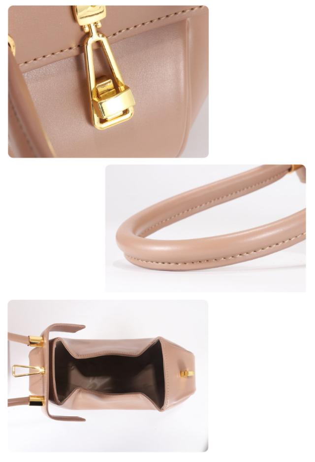 | 前と横で見え方が変わるオシャレなミニバッグ。 高級感溢れるブラックの牛革で結婚式やパーティに大活躍! スマホとコスメなど必要なものだけ入れられます。 大きく開くので普段使いも◎ | |