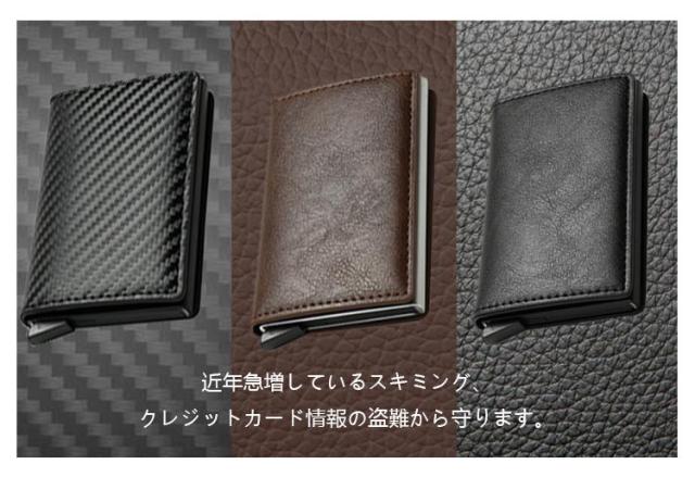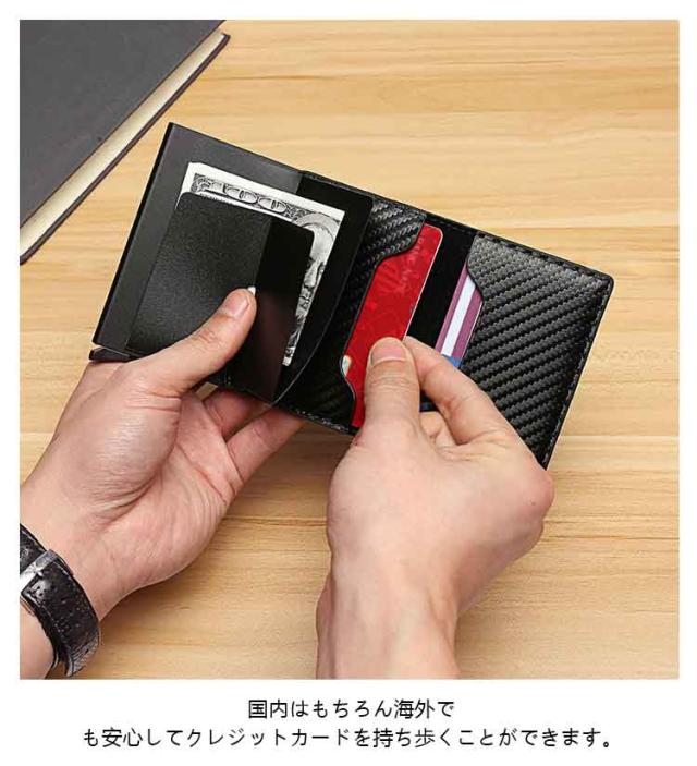 カードケース クレジットカードケース スキミング防止 スライド式 ワンタッチ 磁気防止 カーボンパターン カード入れ メンズ レディース スリム 薄型 薄い クレジットカード icカード RFID カードホルダー
