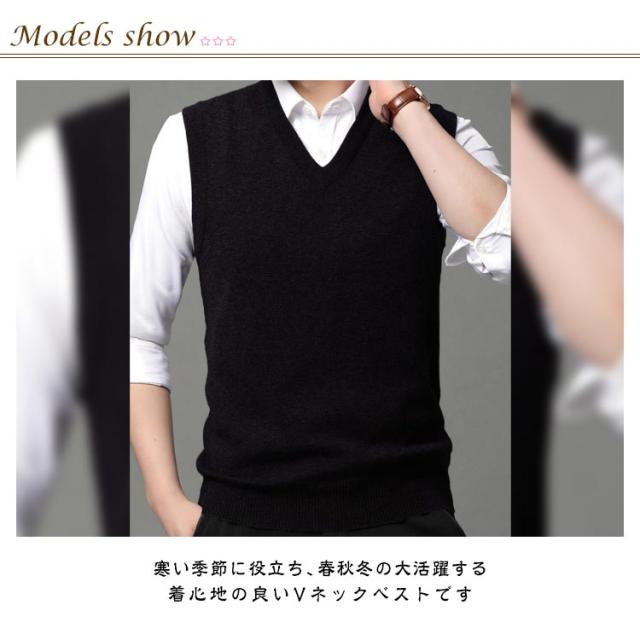 ニット ベスト メンズ ビジネス ニットベスト Vネック フォーマル 無地 シンプル スクール 制服 セーター 大きいサイズ ビジネスベスト スーツ 春 秋 冬 洗える 男性 オフィス カジュアル 10代 20代 30代 40代 50代 L XL 2XL