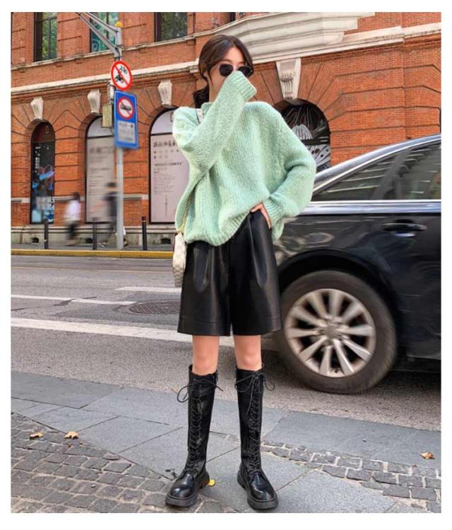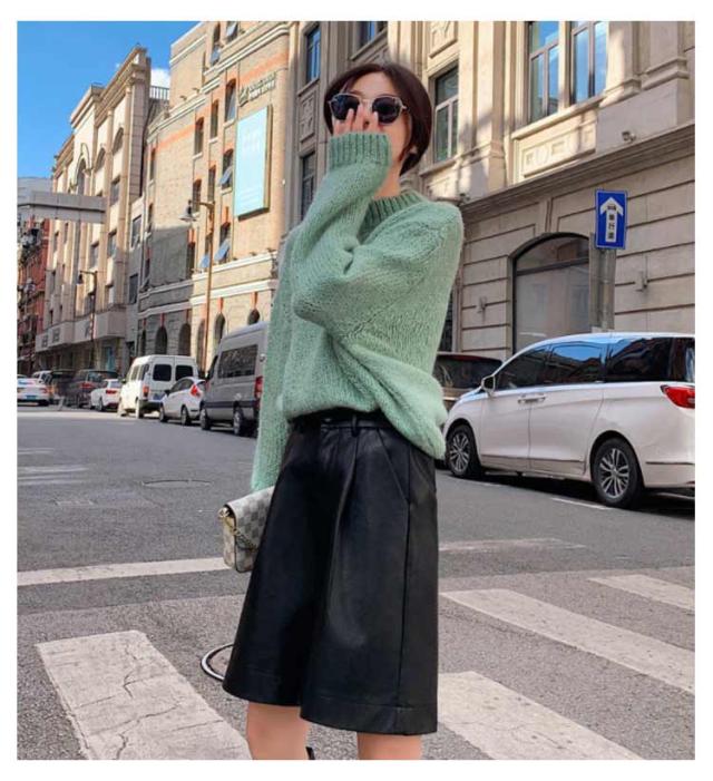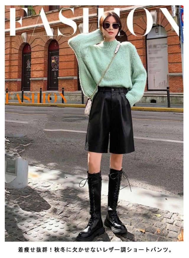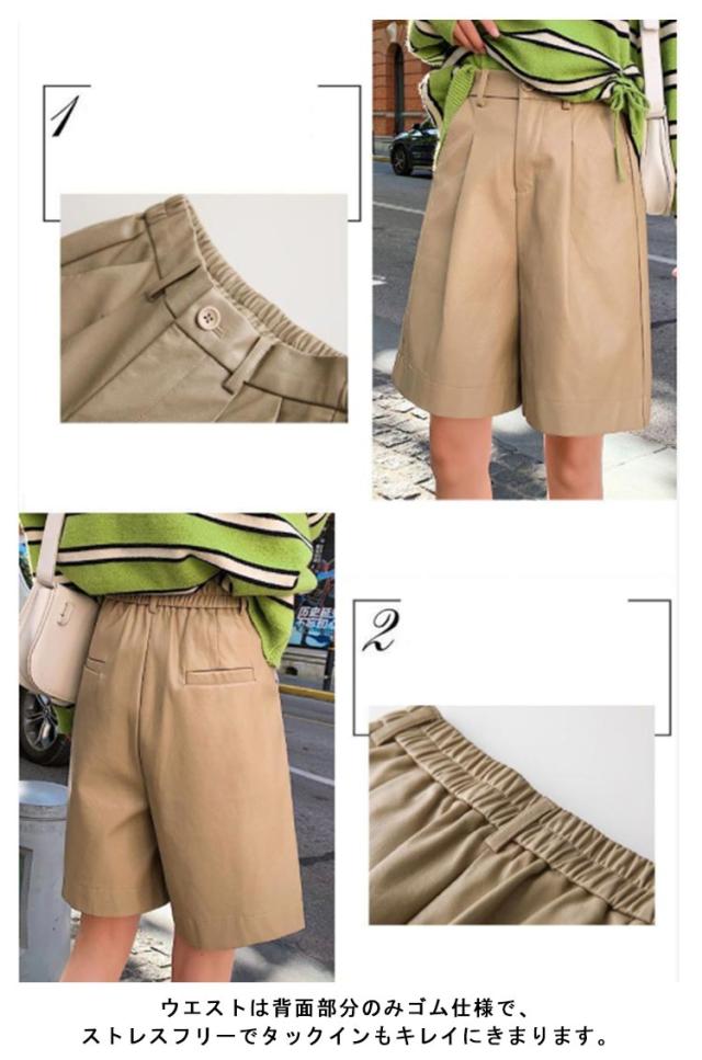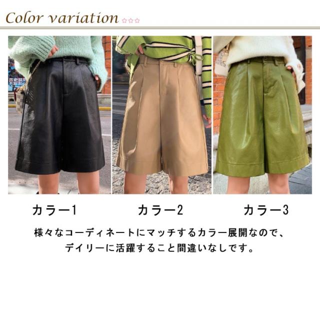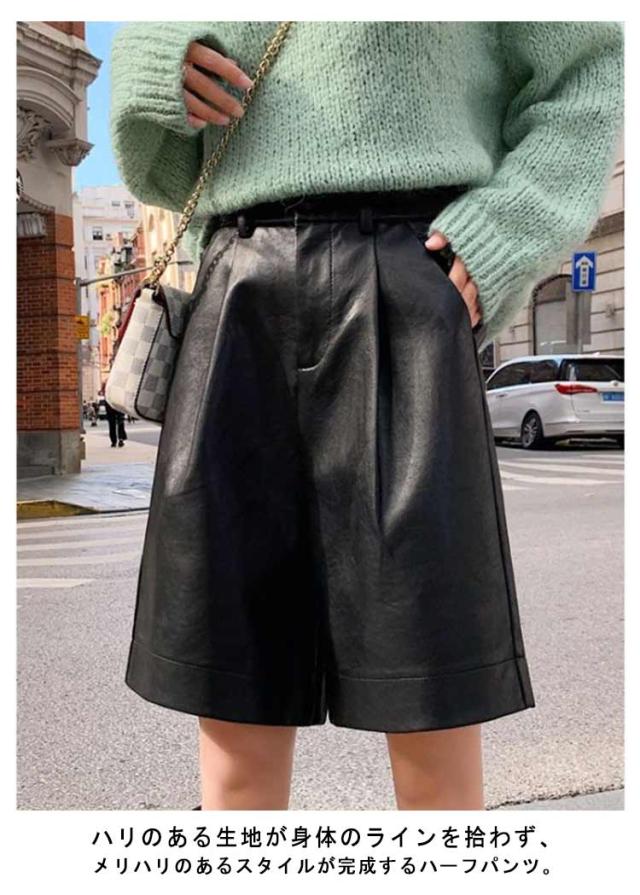 ハーフパンツ レディース レザー パンツ 秋冬 かわいい ワイド 短パン ハーフパンツ ワイドパンツ 半ズボン 革パンツ 通勤 レザーパンツ フェイクレザー カジュアル きれいめ おしゃれ お出かけ 体型カバー 韓国 S M L XL 2XL 3XL