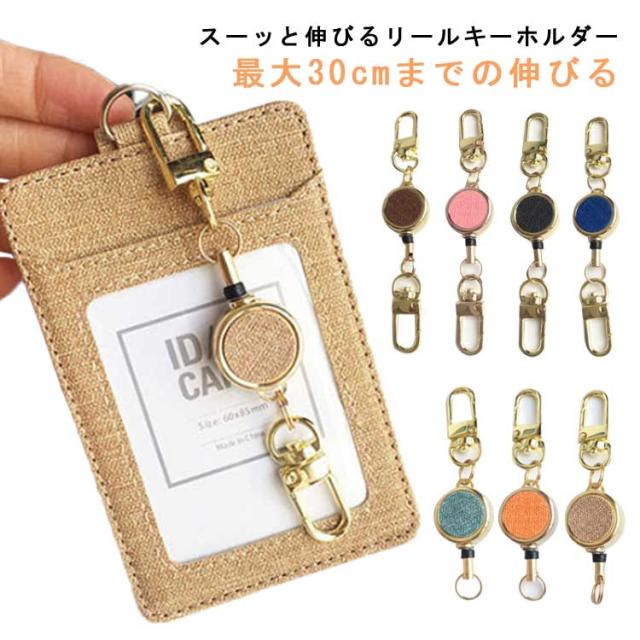 リールキーホルダー 伸びる リールキー 送料無料 キーチェーン キーリング 合金製 丸型 キーリール リールストラップ キーホルダー 定期入れ パスケース IDカード 鍵 キーケース かわいい おしゃれ 女性 メンズ 男性 リング 車 鍵 バッグチャーム 通勤 通学 プレゼント