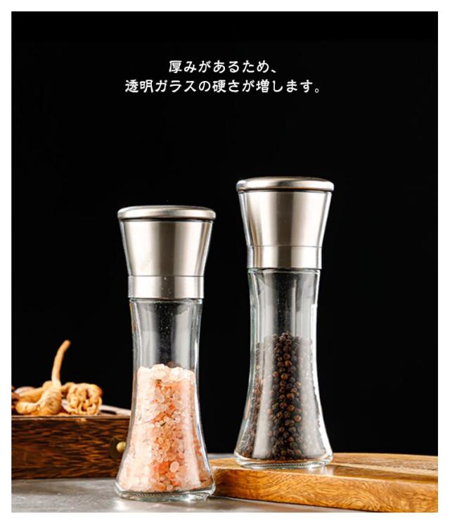 【2本セット】ペッパーミル 手動 胡椒ミル 岩塩ミル 胡椒料理用品 胡椒製作器 粗さ調節可能 ソルトミル 胡椒挽き こしょう挽き スパイスミル シンプル 胡椒 ミル ペッパー ソルト ミル 調理用品 調理道具 ガラス ステンレス おしゃれ コショウ 岩塩 塩 黒胡椒