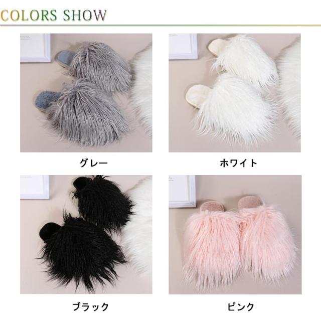 ふわふわ スリッパ 暖かい 冬 ルームシューズ あったか もこもこ 長毛 子供 レディース かわいい ファー ファースリッパ 室内履き 外履き 部屋履き 前詰まり 足元 トイレ オフィス 室内スリッパ ふわふわスリッパ 滑りにくい グレー ホワイト 白 ブラック ピンク おしゃれ