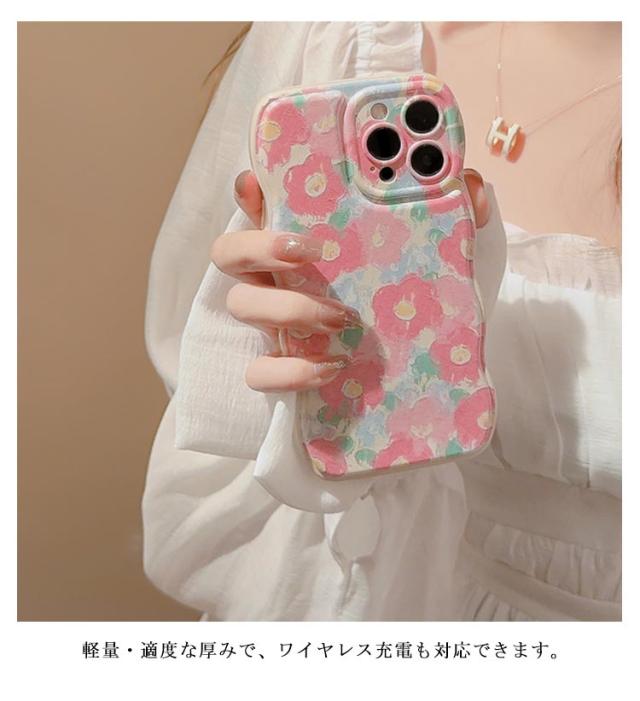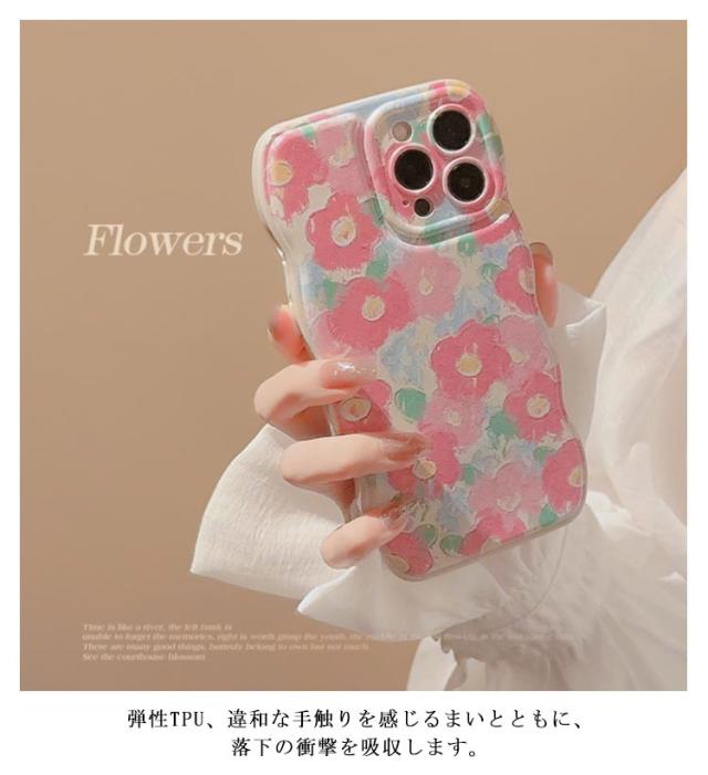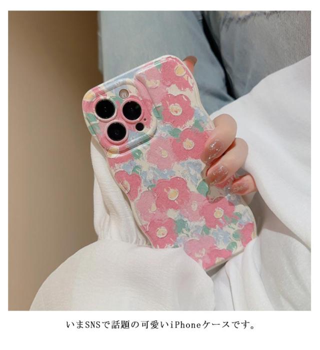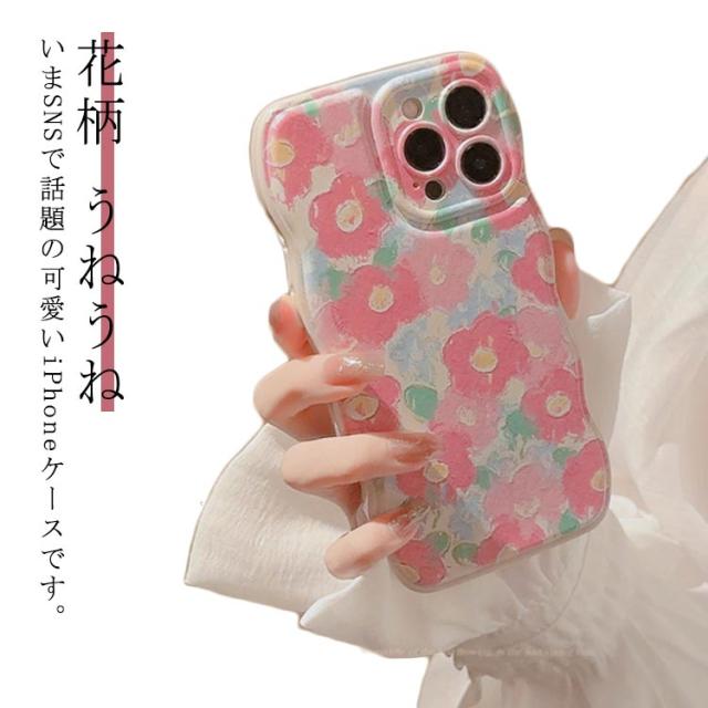iPhoneケース 花柄 うねうね なみなみ iphone15 iphone15pro max iphone15 韓国 シリコン 耐衝撃 かわいい スマホケース ウェーブ 可愛い おしゃれ SNS 大人かわいい 女子