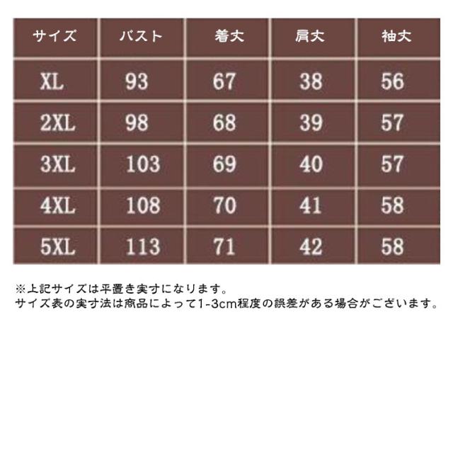 | サイズ | XL 2XL 3XL 4XL 5XL |