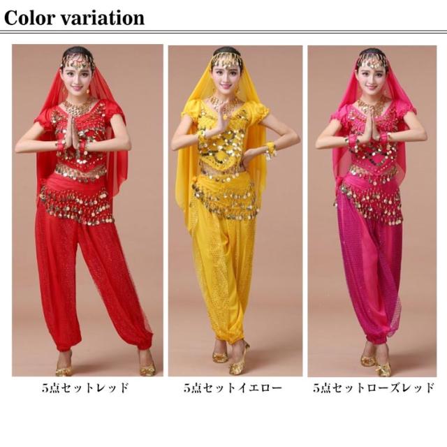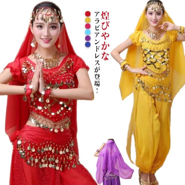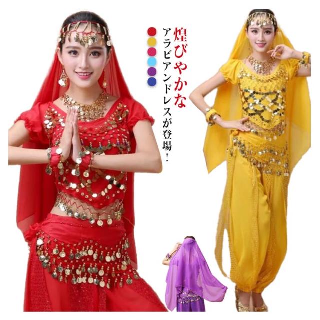 | 煌びやかなアラビアンドレスが登場! 超大ボリュームの5点フルセット! これ一着で綺麗なアラビアンナイトの姫に変身! 全身シースルーでセクシーかつ大胆な肌見せと かがやく金の飾りがマッチしてとっても艶やか。 ベリーダンスにも使えるので、文化祭やパーティーにぴったり もちろんハロウィンにももってこいのアイテムです。 アラビアンナイト風衣装で目立つこと間違いなしです。 トップスはパフスリーブタイプで背中が大きく空いた 可愛さとセクシーさを併せ持つデザイン。 背中の開きは調節ができ、サイドに広がる生地をリボン結びにして 肌見せの範囲を変えることができます。 ボトムは透け感のある生地とスパンコールがストライプ模様になっていて 動くと少し肌が見える絶妙なセクシーさ。 スパンコールの輝きも目を惹きます。 腰に巻くストールやアクセサリーもセットになっているので 全部付けでゴージャスにするも良し、お好みでシンプルに着るのも良し。 ハロウィン時期以外にもイベントや余興にも最適! グループでお揃いにすると目立つこと間違いなし。 | |