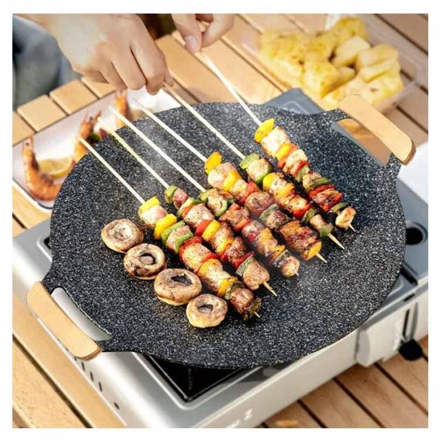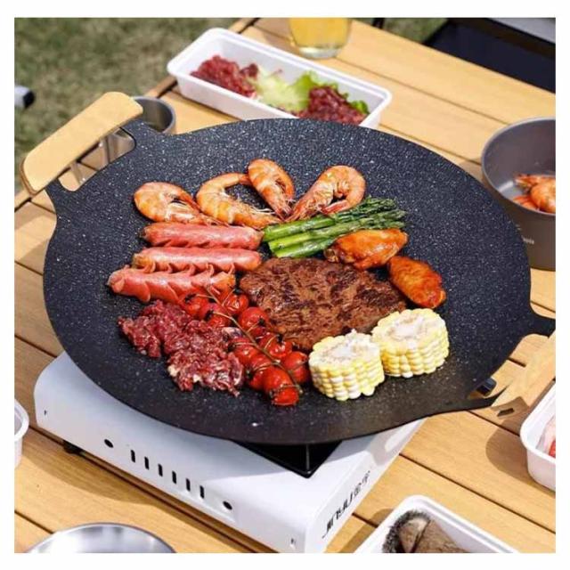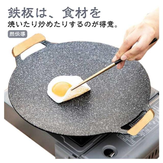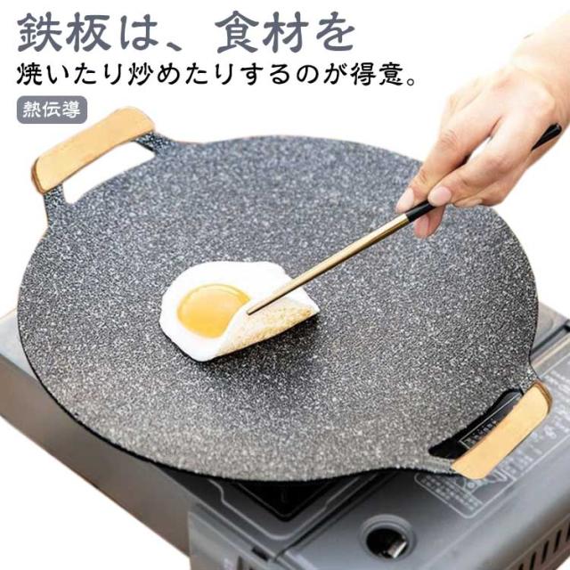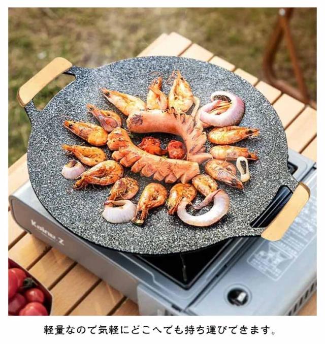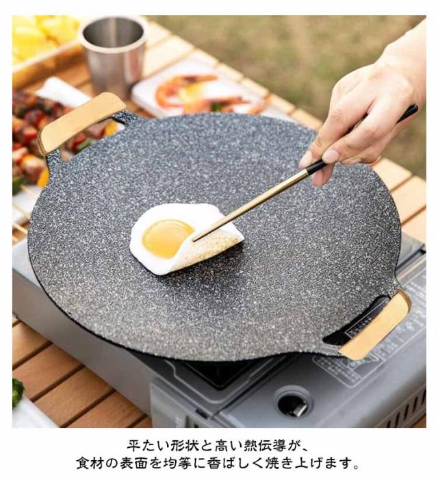 グリドル 鉄板 アウトドア プレート 丸型鉄板 フライパン 鉄鍋 ジェイエイチキュー IH サビにくい BBQ アルミ アルミ合金 ガスコンロ 炭火 直火 熱伝導 ステーキ トング付き 軽量 家庭 キャンプ