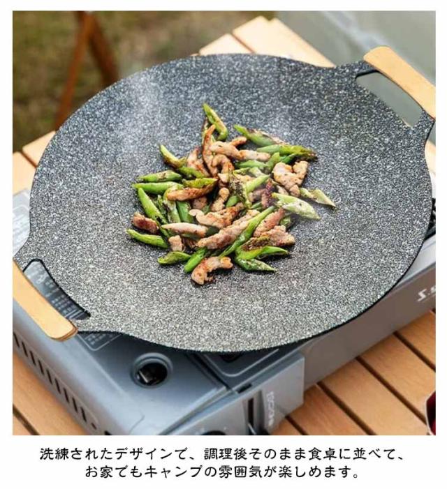 | 鉄板は、食材を焼いたり炒めたりするのが得意。 平たい形状と高い熱伝導が、食材の表面を均等に香ばしく焼き上げます。 洗練されたデザインで、調理後そのまま食卓に並べて、お家でもキャンプの雰囲気が楽しめます。 軽量なので気軽にどこへでも持ち運びできます。 | |