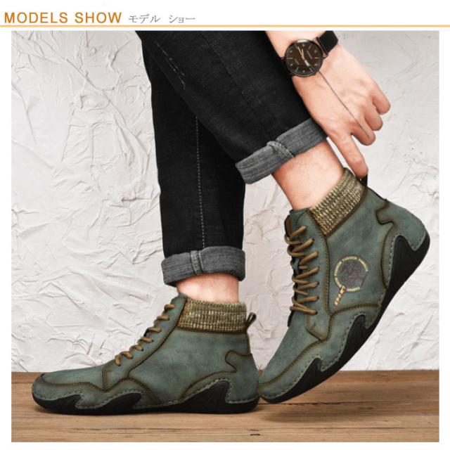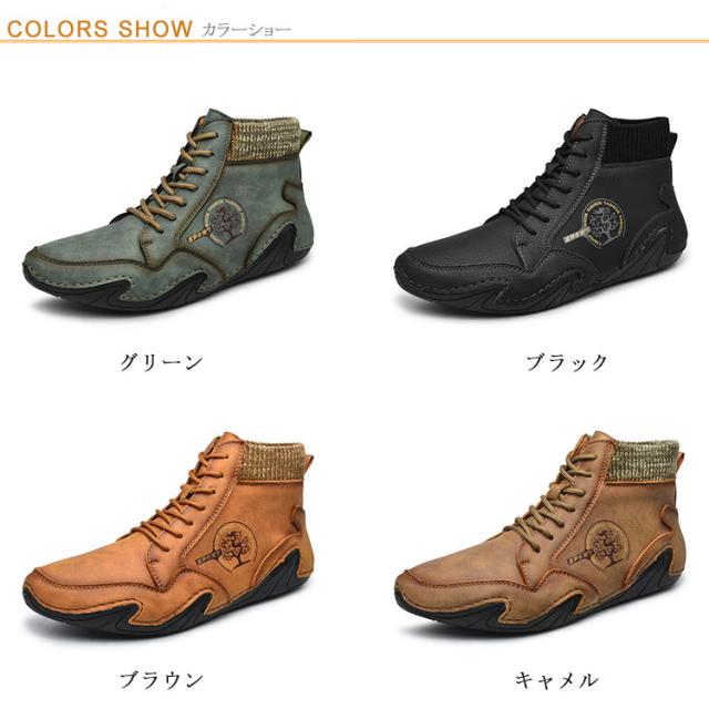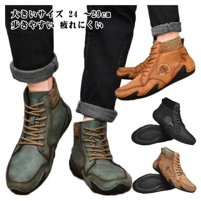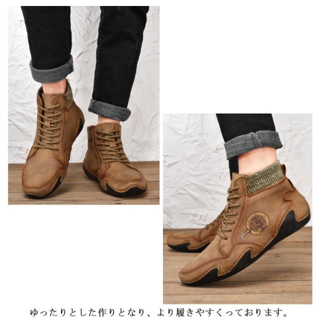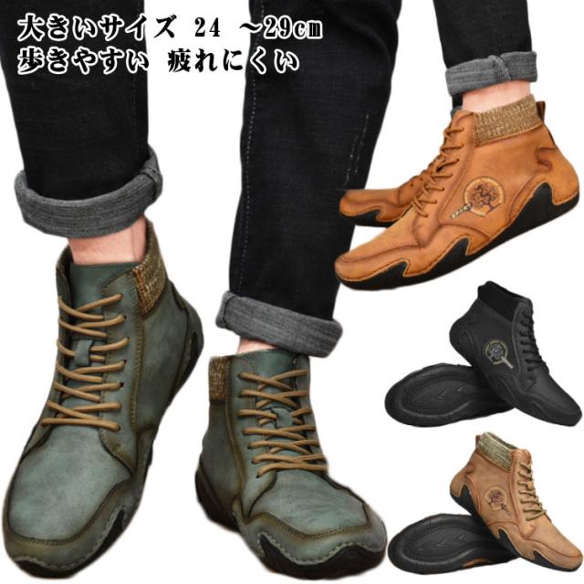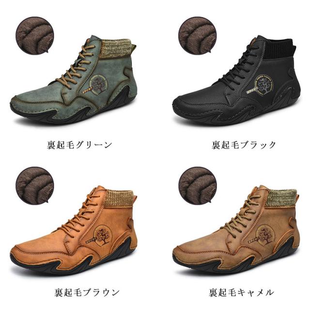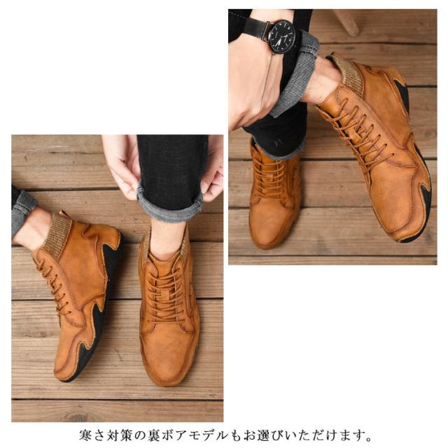 本革 ドライビングシューズ メンズ 秋冬 春秋 裏ボア スニーカー 裏起毛 モカシン カジュアルシューズ ハイカット 軽量 歩きやすい 疲れにくい 柔らかい スポーティ アウトドア 大きいサイズ 24-29cm 送料無料