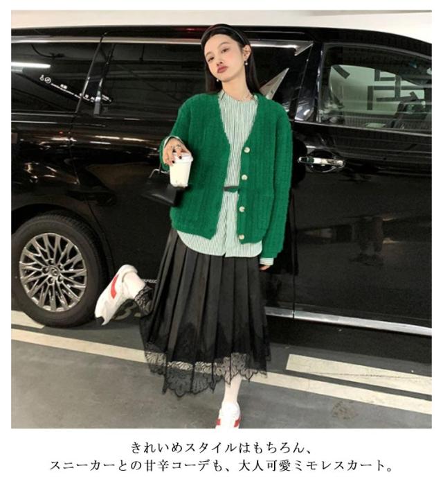 | 女性らしさを引き立てるレースとレザーの組み合わせスカート。 フェミニンな切り替えで美しさを纏うエレガントなスカート。 リゾートに映える、レース切り替えの存在感で、コーディネートの主役に! きれいめスタイルはもちろん、スニーカーとの甘辛コーデも、大人可愛ミモレスカート。 1枚でスタイルのアクセントに、手持ちの単品に合わせるだけでおしゃれなコーディネートが完成するのでおすすめです。 ゆったり着られ、パーティー、カジュアルでも上品に大人っぽく決まります。 | |