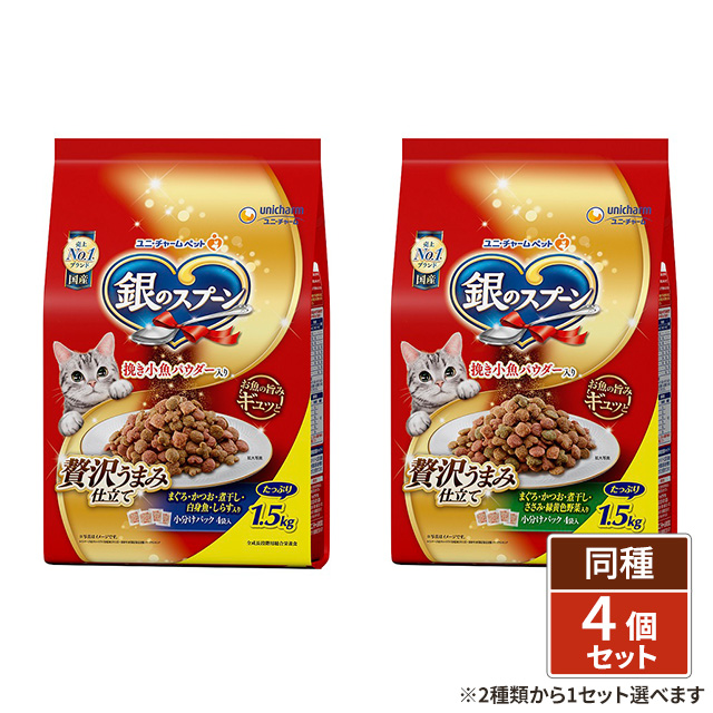 [2種類から1セット選択] 銀のスプーン 贅沢うまみ仕立て 1.5kg×4個パック ユニ・チャーム