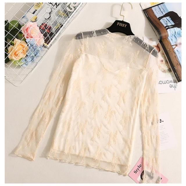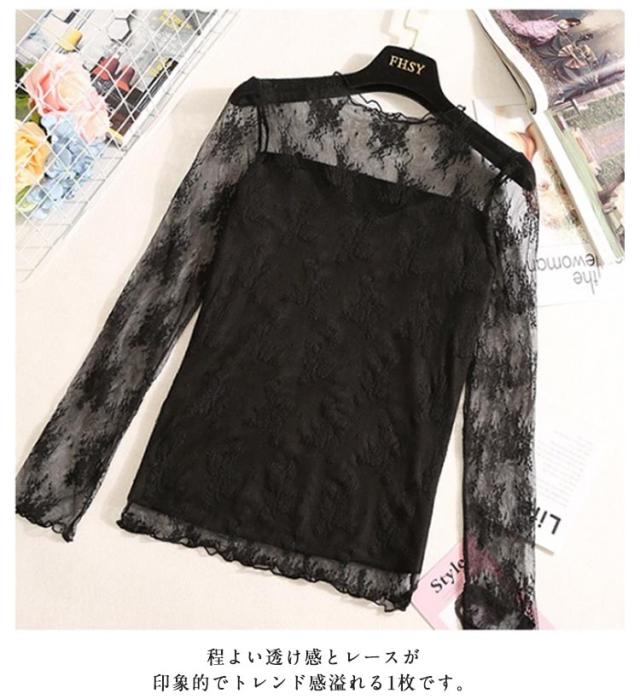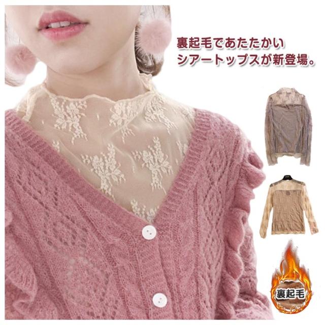 シアートップス 裏起毛 レディース 長袖 レース Tシャツ カットソー ハイネック インナー 首元 シワ隠し 重ね着 透け感 レイヤード ストレッチ きれいめ 花柄 プルオーバー オケージョン フォーマル オフィス カジュアル 秋 冬