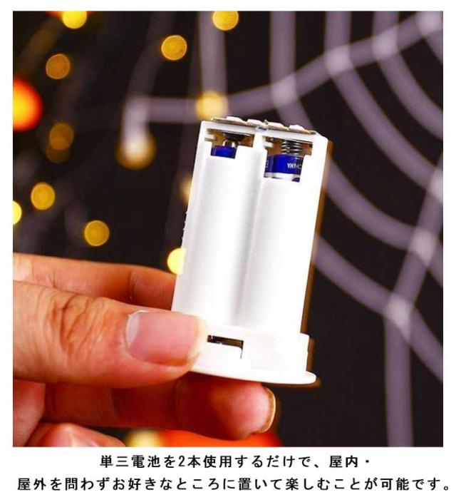 | ハロウィンを華やかに演出!自宅でも手軽に飾れるLEDライト。 単三電池を2本使用するだけで、屋内・屋外を問わずお好きなところに置いて楽しむことが可能です。 しっかりと暗闇の中で存在感のある怪しい光を放ってくれます。 程良いサイズ感により置き場所に困りにくく、持ち運びもスムーズに行えます。 いろんな場所に飾ることができる!玄関やお部屋、お店に飾って楽しめます。 | |