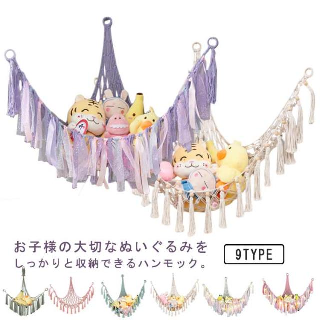| お子様の大切なぬいぐるみをしっかりと収納できるハンモック。 三角形のデザインはコーナー位置を最大限に活用して、ぬいぐるみも一目で見つけられます。 おしゃれなデザインは、どんなインテリアにもマッチします。 タッセルをつけると、よりインテリア感の強い、おしゃれな印象に。 子供部屋だけでなく、リビングや寝室など、さまざまな場所に設置できます。 | |