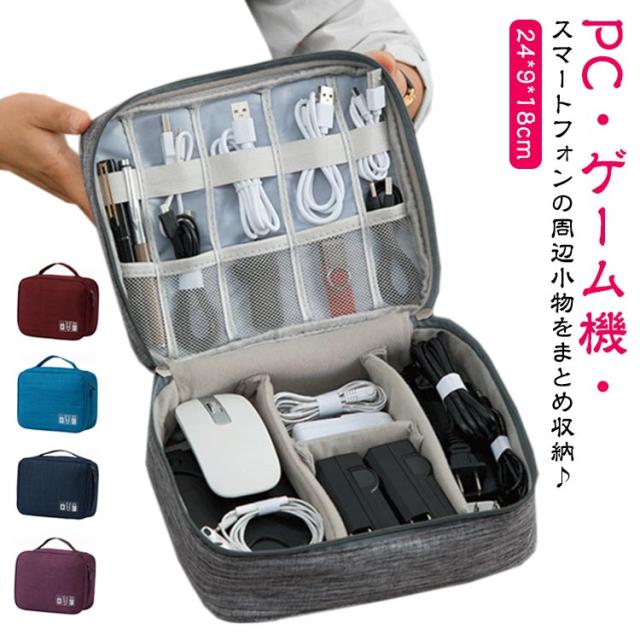 | PC・ゲーム機・スマートフォンの周辺小物をまとめ収納♪ ごちゃごちゃしがちなケーブル類や電源アダプタ・イヤホン・SDカードにUSBメモリーなどの小物をまとめて収納できる収納ポーチです。 180°開くので、中の物が一目瞭然!取り出しやすい。 内蔵の仕切りはマジックテープでお好みに合わせて無段階調節可能。 汚れに強い特殊編み生地を採用し、生活防水仕様・クッション材入りで大切な小物を水や汚れ・衝撃からから守ります。 ガジェットポーチとしてだけでなく、コスメポーチや旅行ポーチとしてもご使用いただけます。 | |